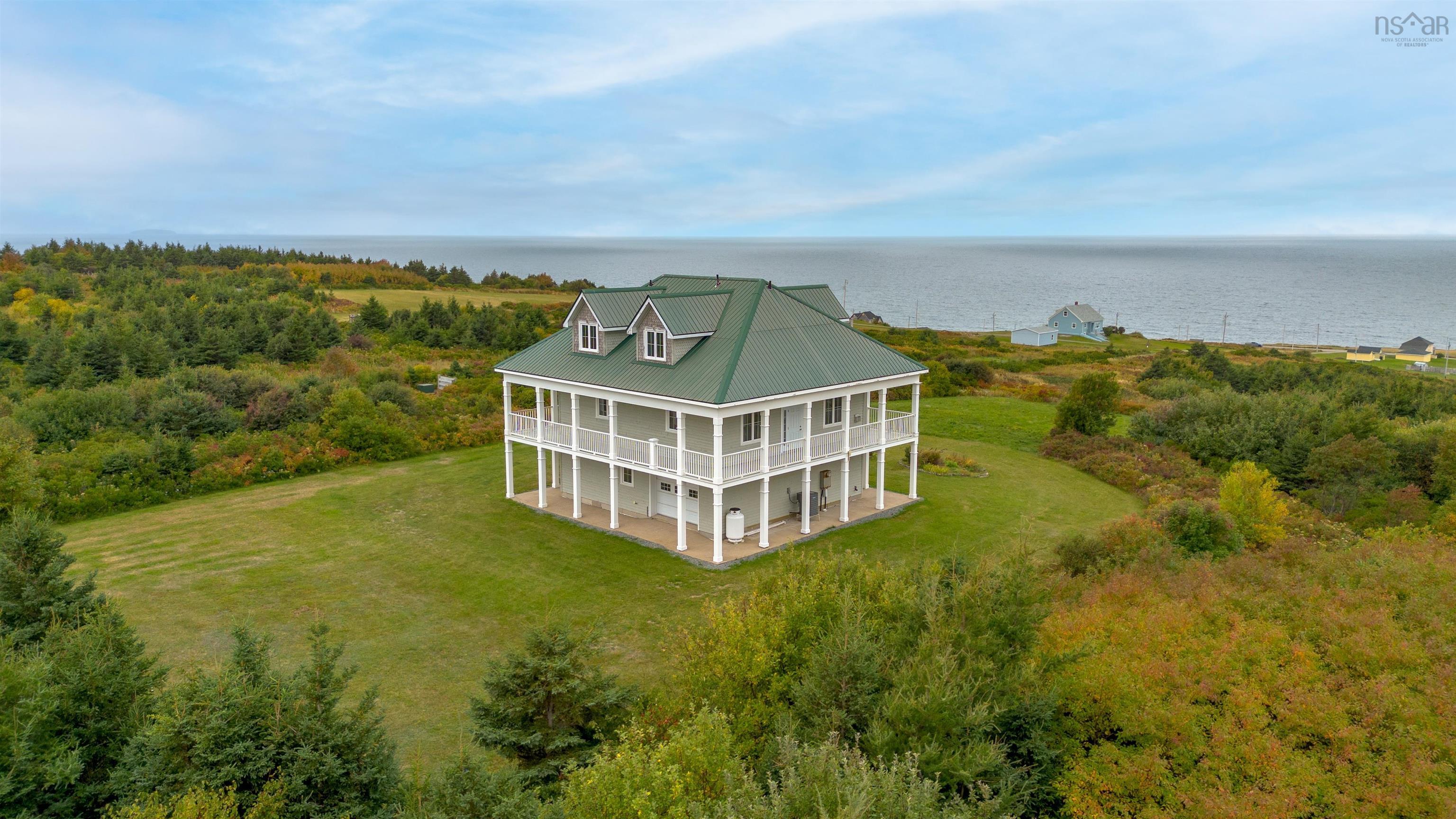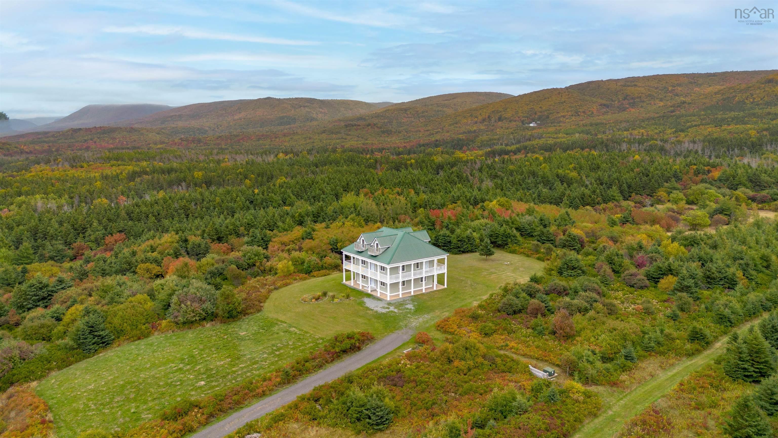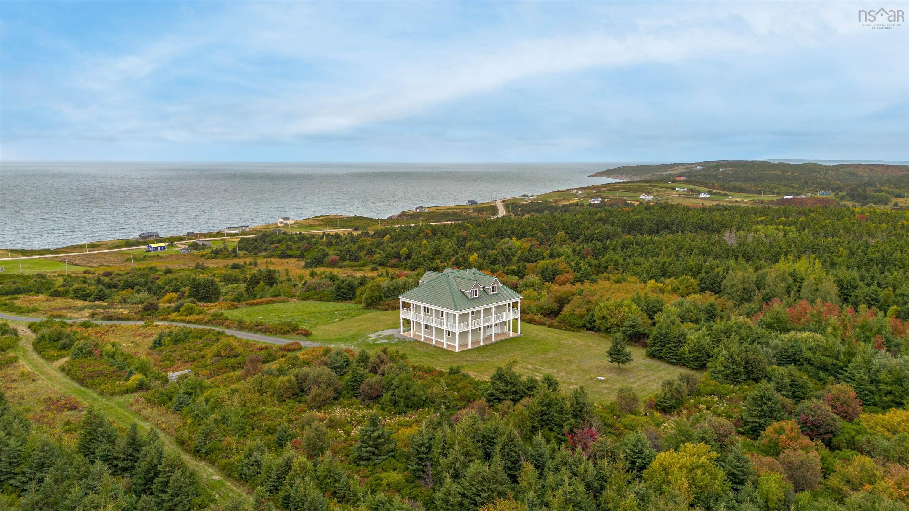 Luxurious Highland Retreat with Ocean to Mountain Views off of the Cabot Trail. Positioned atop 57 ACRES in the serene landscape, this magnificent three-level home offers panoramic views that seamlessly blend ocean coastline with the rugged highlands. Built in 2008, this property combines grandeur with an intimate connection to the natural surroundings. Featuring dual-level wrap-around balcony plus third floor viewing platforms. Boasting 4 spacious bedrooms and 4 bathrooms, each bedroom being complemented by its own ensuite. The main floor includes a self-contained apartment, perfect for guests, alongside laundry and direct access to the attached garage. The second floor is the heart of the home: an expansive open-plan living room, kitchen, and dining area. This central gathering space is framed by large windows and three access points to the wrap-around patio, inviting breathtaking views indoors. The gourmet kitchen is designed for the culinary enthusiast with extensive counter space and a large pantry. The third level is a private sanctuary, home to two primary bedrooms, each boasting open ensuites and private walkouts to the upper balconies. Here, the views elevate to the extraordinary. The sprawling 57-acre estate is not just a home, but a lifestyle investment. With its unmatched location, architectural beauty, and expansive grounds, it offers a rare opportunity to own a piece of paradise in Cap Le Moine. Whether as a family estate or a developmental venture, this home promises to be a sanctuary of peace and potential. Experience the pinnacle of coastal and highland living. A visit to this grand estate in Cap Le Moine is the first step toward owning the extraordinary.