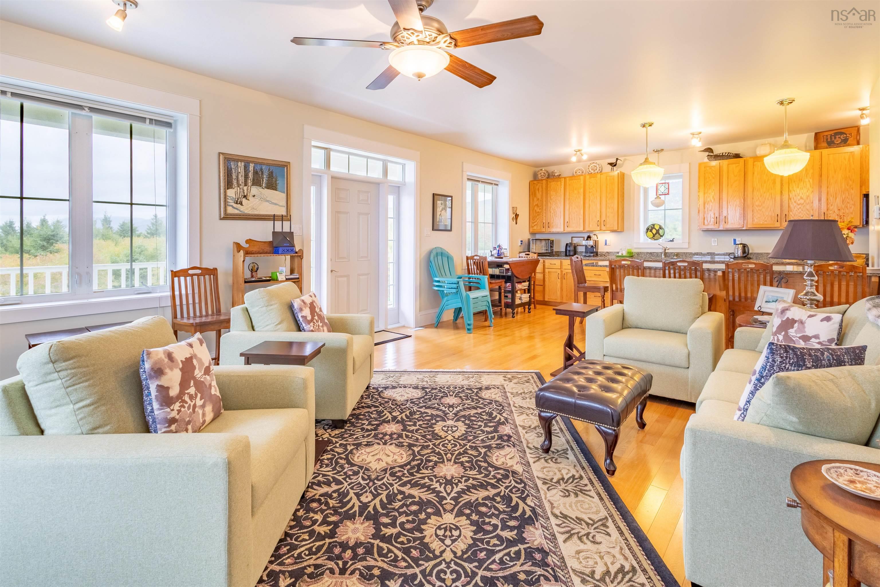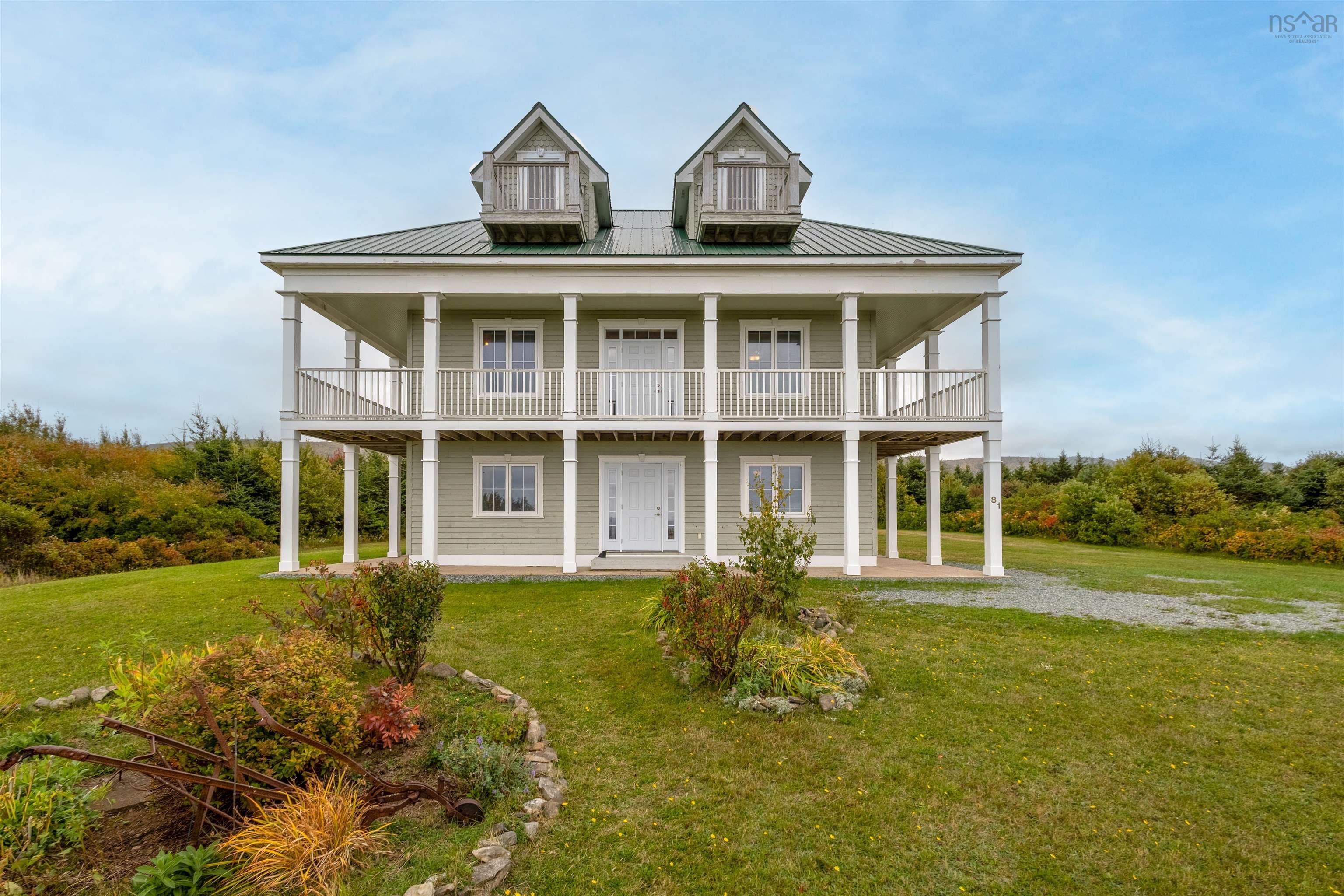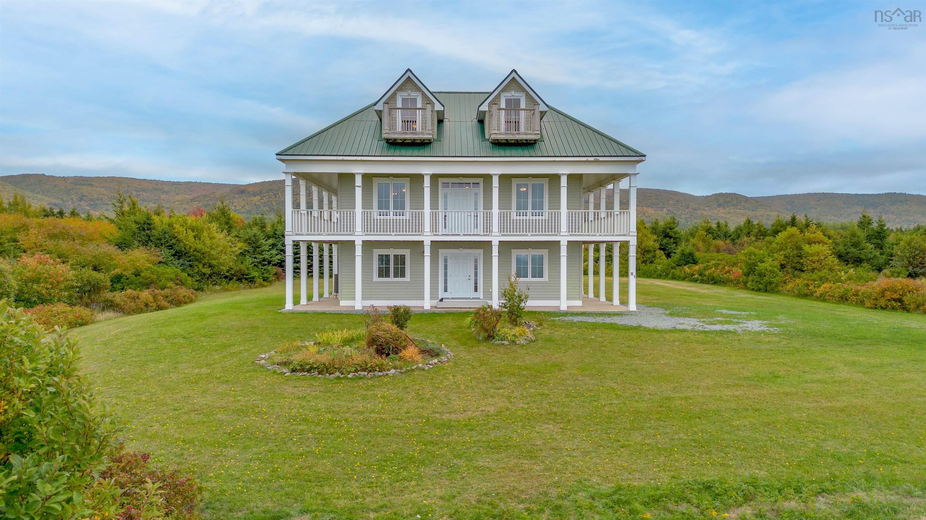 Luxurious Highland Retreat with Ocean to Mountain Views off of the Cabot Trail. Positioned atop 57 ACRES in the serene landscape, this magnificent three-level home offers panoramic views that seamlessly blend ocean coastline with the rugged highlands. Built in 2008, this property combines grandeur with an intimate connection to the natural surroundings. Featuring dual-level wrap-around balcony plus third floor viewing platforms. Boasting 4 spacious bedrooms and 4 bathrooms, each bedroom being complemented by its own ensuite. The main floor includes a self-contained apartment, perfect for guests, alongside laundry and direct access to the attached garage. The second floor is the heart of the home: an expansive open-plan living room, kitchen, and dining area. This central gathering space is framed by large windows and three access points to the wrap-around patio, inviting breathtaking views indoors. The gourmet kitchen is designed for the culinary enthusiast with extensive counter space and a large pantry. The third level is a private sanctuary, home to two primary bedrooms, each boasting open ensuites and private walkouts to the upper balconies. Here, the views elevate to the extraordinary. The sprawling 57-acre estate is not just a home, but a lifestyle investment. With its unmatched location, architectural beauty, and expansive grounds, it offers a rare opportunity to own a piece of paradise in Cap Le Moine. Whether as a family estate or a developmental venture, this home promises to be a sanctuary of peace and potential. Experience the pinnacle of coastal and highland living. A visit to this grand estate in Cap Le Moine is the first step toward owning the extraordinary.
