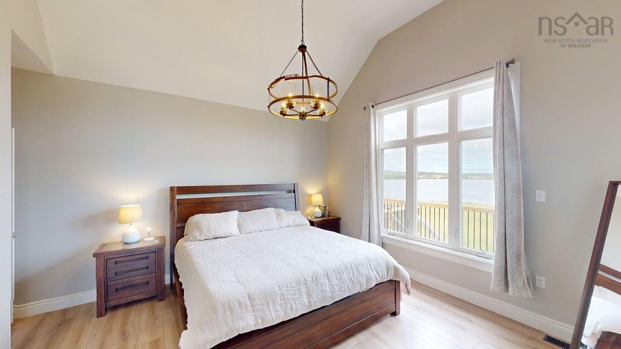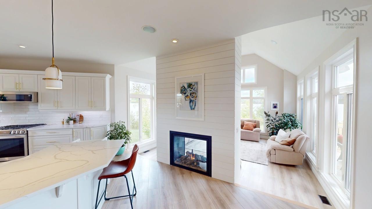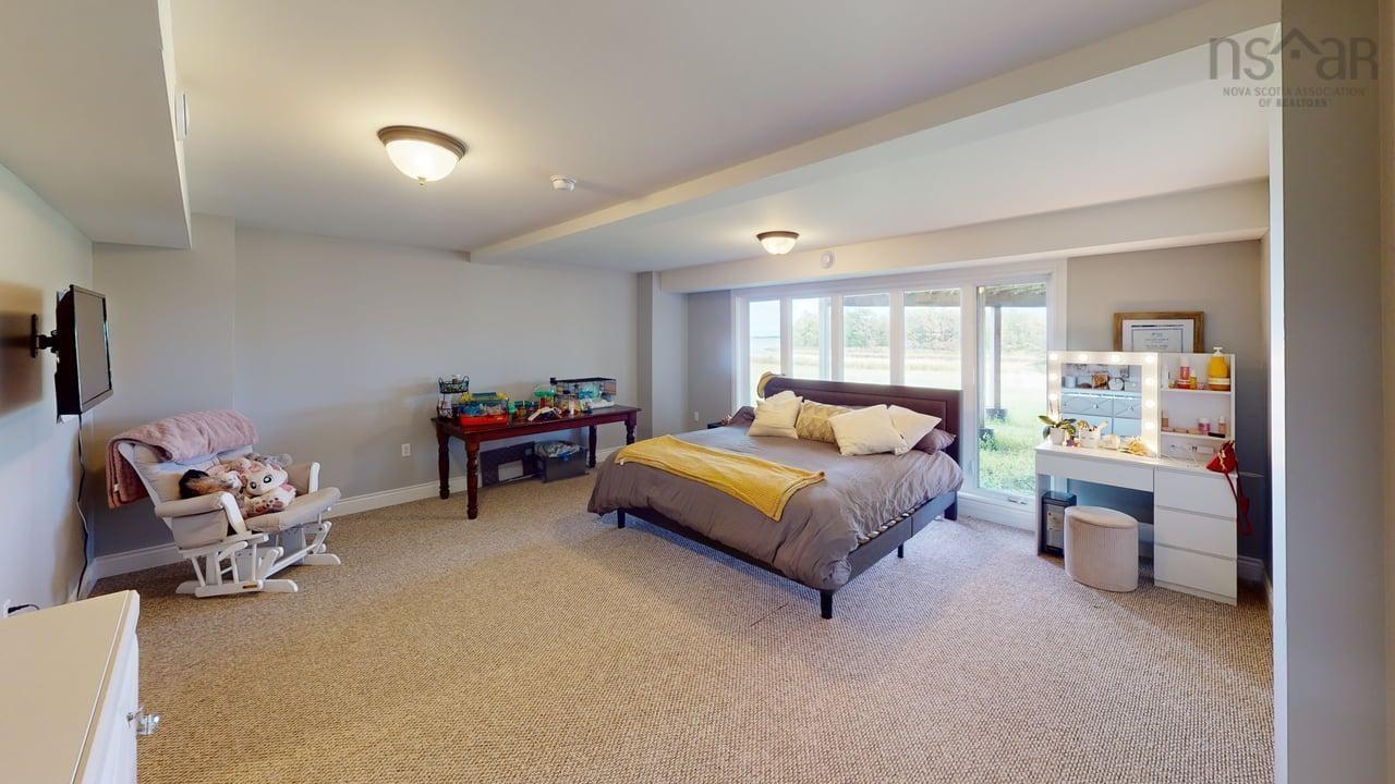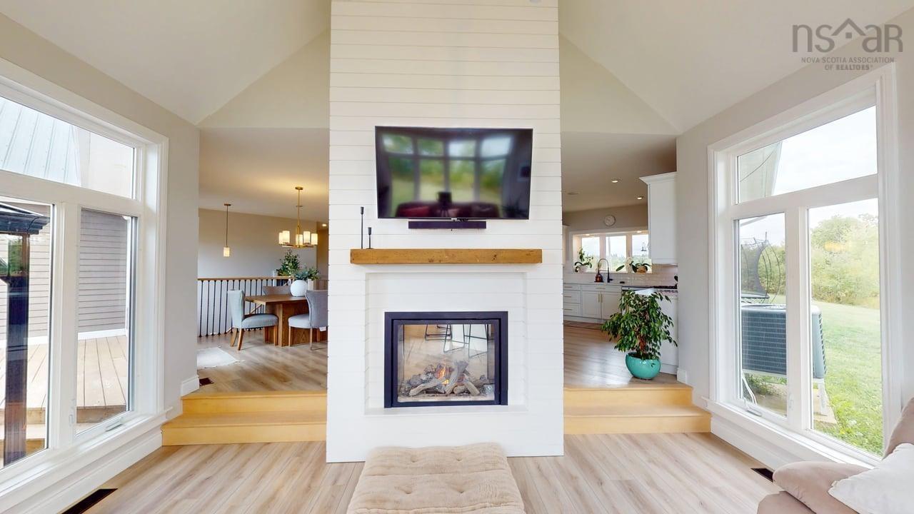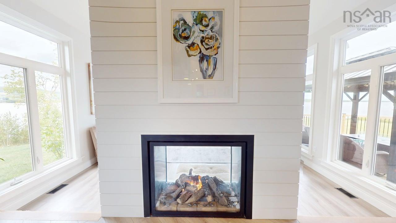 Visit REALTOR® website for additional information. This executive-style home offers elevated features and 500 feet of water frontage on three acres of serene property, just five minutes from the town of Antigonish. Step into a welcoming entryway, with a convenient coatroom off to the side, that flows into a bright, open dining area and kitchen. The kitchen features a solid surface marble counter with bar seating, while a two-way propane fireplace-updated with floor-to-ceiling shiplap-creates an elegant focal point between the dining space and the sunken living room. Here, dramatic ceilings and floor -to-ceiling windows frame extraordinary views of Antigonish Harbour. From the dining area, double doors open onto a spacious patio with sweeping panoramic vistas. The main level hosts the primary suite, complete with a large walk-in closet and a luxurious five-piece ensuite. Relax in the deep soaker tub while taking in water views, or enjoy the spa-like dual shower with double shower heads and smart controls. The primary bedroom also has direct access to a large deck, enhancing its bright and airy feel. In total, the home offers four bedrooms and three and a half baths. Downstairs there is a dedicated laundry room with a butcher block counter. The lower level features a large family room with walkout access to the backyard, a spacious bedroom with a walk-in closet, a separate playroom, and two additional rooms ideal for office or hobby space. Recent upgrades include a durable metal roof, a ducted heat pump system, updated lighting in the main living area, and a generator hookup for peace of mind. This property combines the tranquility of rural living with the convenience of being minutes from town-an ideal retreat with modern comforts and unparalleled views.