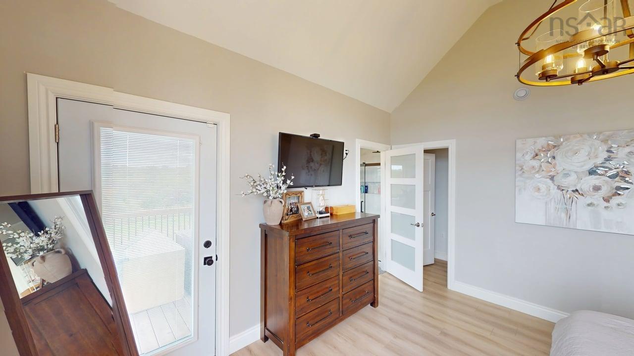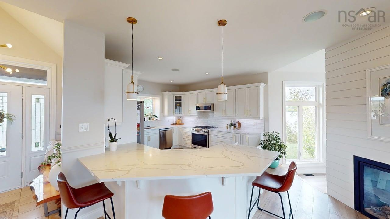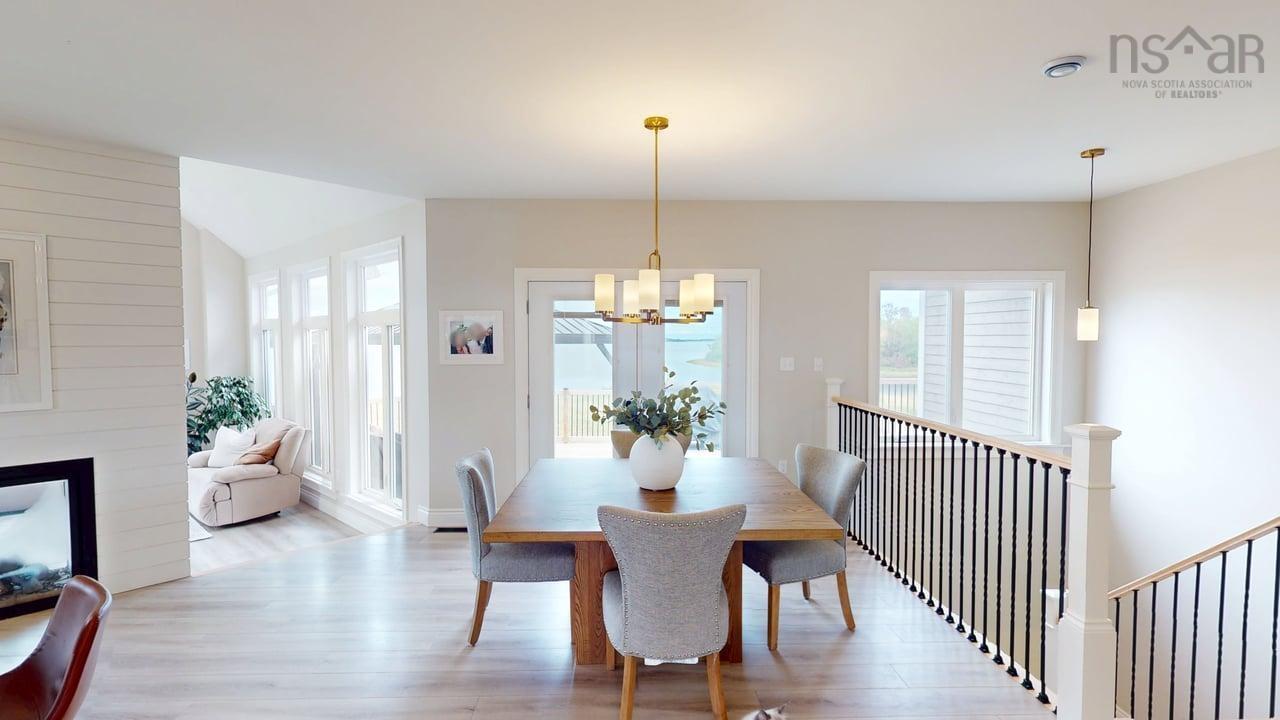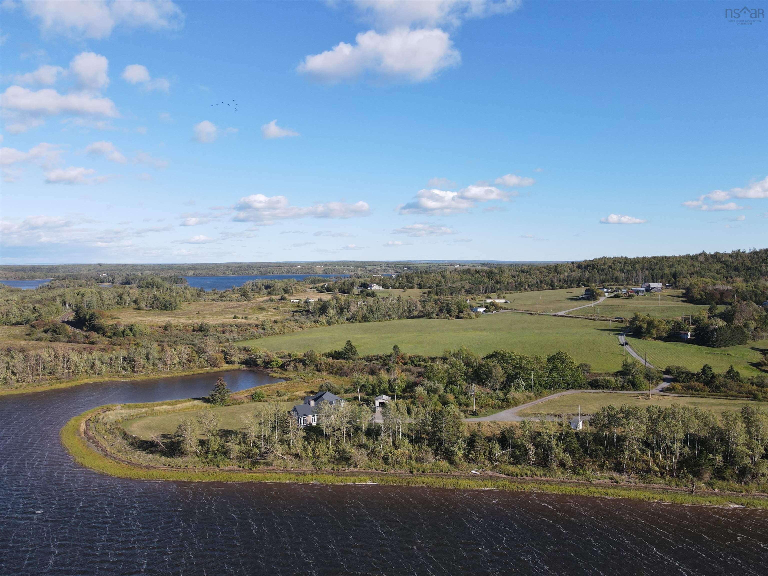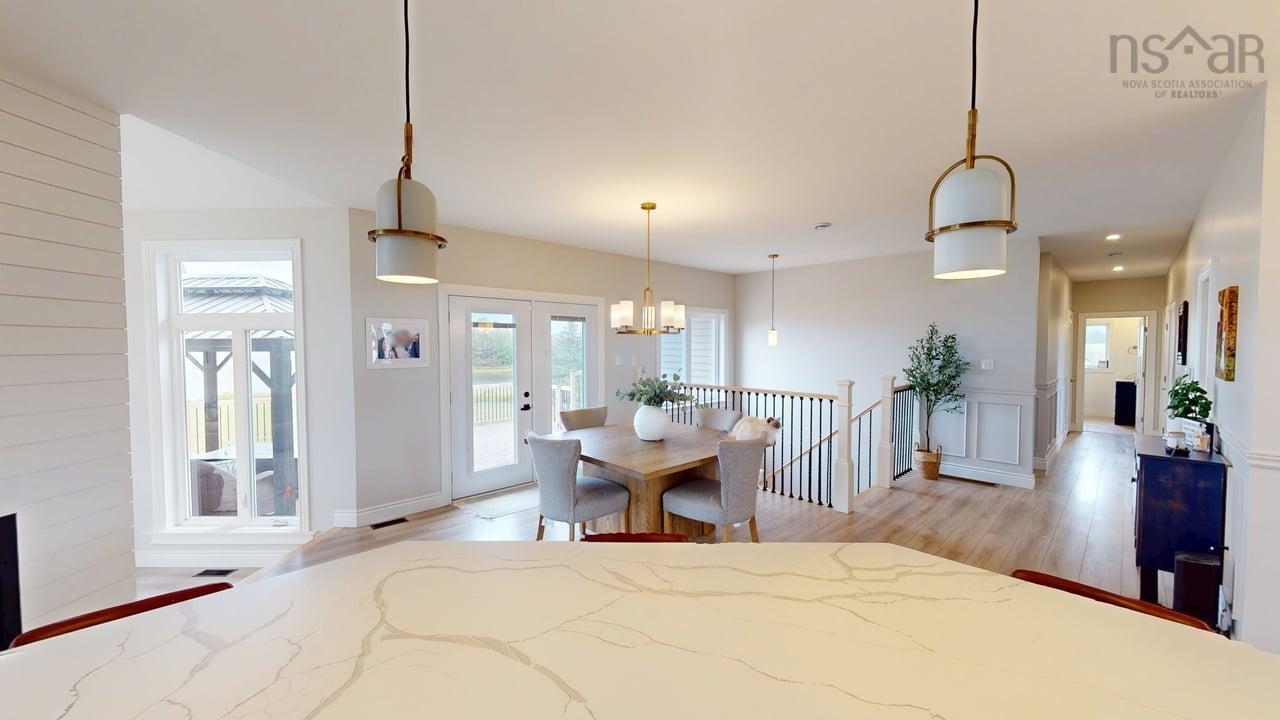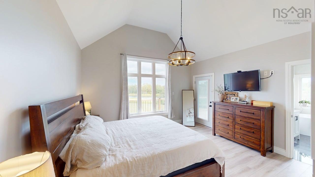 Visit REALTOR® website for additional information. This executive-style home offers elevated features and 500 feet of water frontage on three acres of serene property, just five minutes from the town of Antigonish. Step into a welcoming entryway, with a convenient coatroom off to the side, that flows into a bright, open dining area and kitchen. The kitchen features a solid surface marble counter with bar seating, while a two-way propane fireplace-updated with floor-to-ceiling shiplap-creates an elegant focal point between the dining space and the sunken living room. Here, dramatic ceilings and floor -to-ceiling windows frame extraordinary views of Antigonish Harbour. From the dining area, double doors open onto a spacious patio with sweeping panoramic vistas. The main level hosts the primary suite, complete with a large walk-in closet and a luxurious five-piece ensuite. Relax in the deep soaker tub while taking in water views, or enjoy the spa-like dual shower with double shower heads and smart controls. The primary bedroom also has direct access to a large deck, enhancing its bright and airy feel. In total, the home offers four bedrooms and three and a half baths. Downstairs there is a dedicated laundry room with a butcher block counter. The lower level features a large family room with walkout access to the backyard, a spacious bedroom with a walk-in closet, a separate playroom, and two additional rooms ideal for office or hobby space. Recent upgrades include a durable metal roof, a ducted heat pump system, updated lighting in the main living area, and a generator hookup for peace of mind. This property combines the tranquility of rural living with the convenience of being minutes from town-an ideal retreat with modern comforts and unparalleled views.