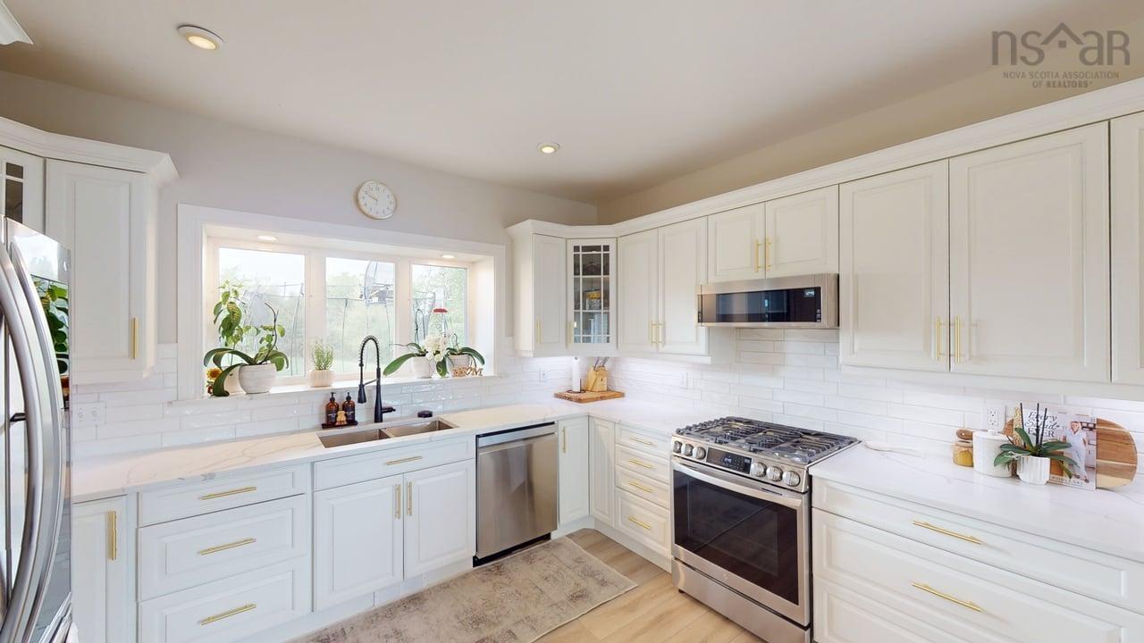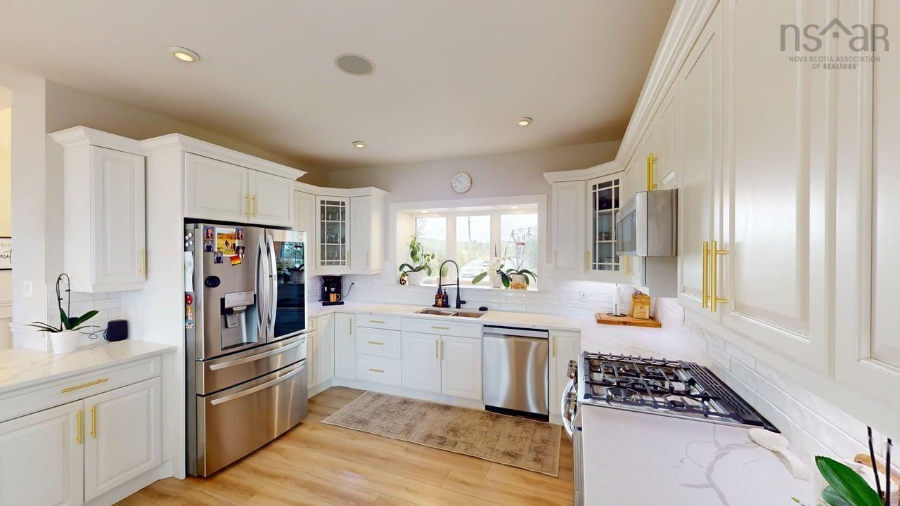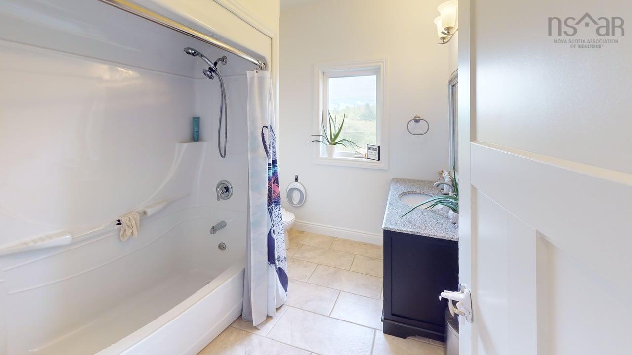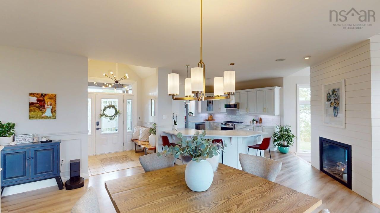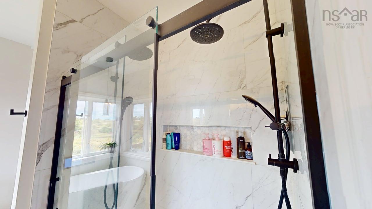 Visit REALTOR® website for additional information. This executive-style home offers elevated features and 500 feet of water frontage on three acres of serene property, just five minutes from the town of Antigonish. Step into a welcoming entryway, with a convenient coatroom off to the side, that flows into a bright, open dining area and kitchen. The kitchen features a solid surface marble counter with bar seating, while a two-way propane fireplace-updated with floor-to-ceiling shiplap-creates an elegant focal point between the dining space and the sunken living room. Here, dramatic ceilings and floor -to-ceiling windows frame extraordinary views of Antigonish Harbour. From the dining area, double doors open onto a spacious patio with sweeping panoramic vistas. The main level hosts the primary suite, complete with a large walk-in closet and a luxurious five-piece ensuite. Relax in the deep soaker tub while taking in water views, or enjoy the spa-like dual shower with double shower heads and smart controls. The primary bedroom also has direct access to a large deck, enhancing its bright and airy feel. In total, the home offers four bedrooms and three and a half baths. Downstairs there is a dedicated laundry room with a butcher block counter. The lower level features a large family room with walkout access to the backyard, a spacious bedroom with a walk-in closet, a separate playroom, and two additional rooms ideal for office or hobby space. Recent upgrades include a durable metal roof, a ducted heat pump system, updated lighting in the main living area, and a generator hookup for peace of mind. This property combines the tranquility of rural living with the convenience of being minutes from town-an ideal retreat with modern comforts and unparalleled views.
