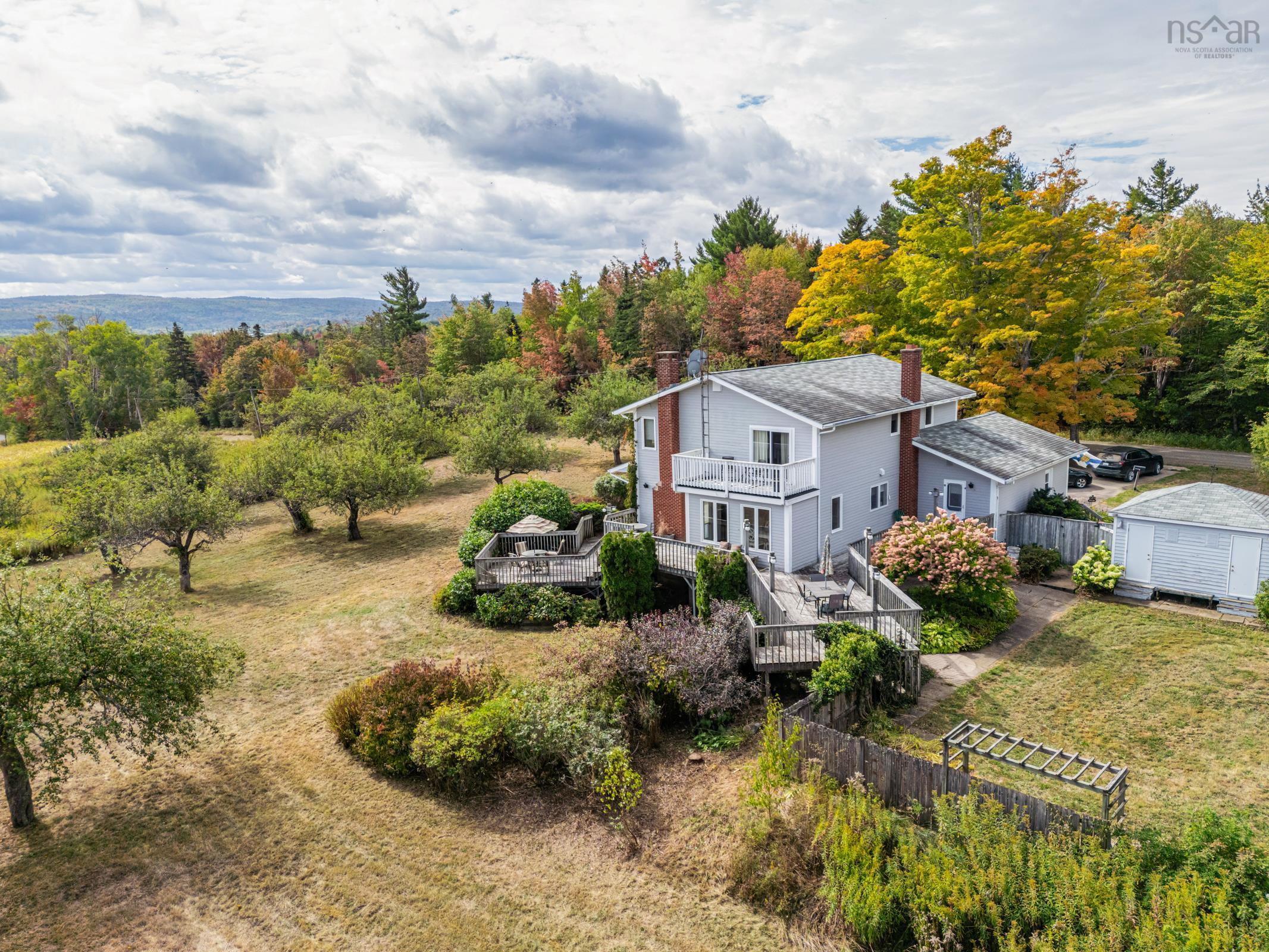 Outstanding 4 bedroom executive country home on 4.5 acres overlooking the Annapolis Valley. Known as 'Vinegar Hill', this home features seamless indoor/outdoor living, a chef's kitchen with DeCoste cabinetry, a living room with stone fireplace, large dining room, plus main floor study and laundry room. Upstairs offers a primary bedroom with private deck, ensuite, walk-in closet, second bathroom, and three additional bedrooms. The basement has a games room, cold room, utility room, and lots of storage. Outside is a paved driveway, huge wrap-around deck/patio, car port, lovely landscaping, and a large shed. Located on a quiet country lane, close to Bridgetown, this beautifully built and cared for home could be just what you have been waiting for.