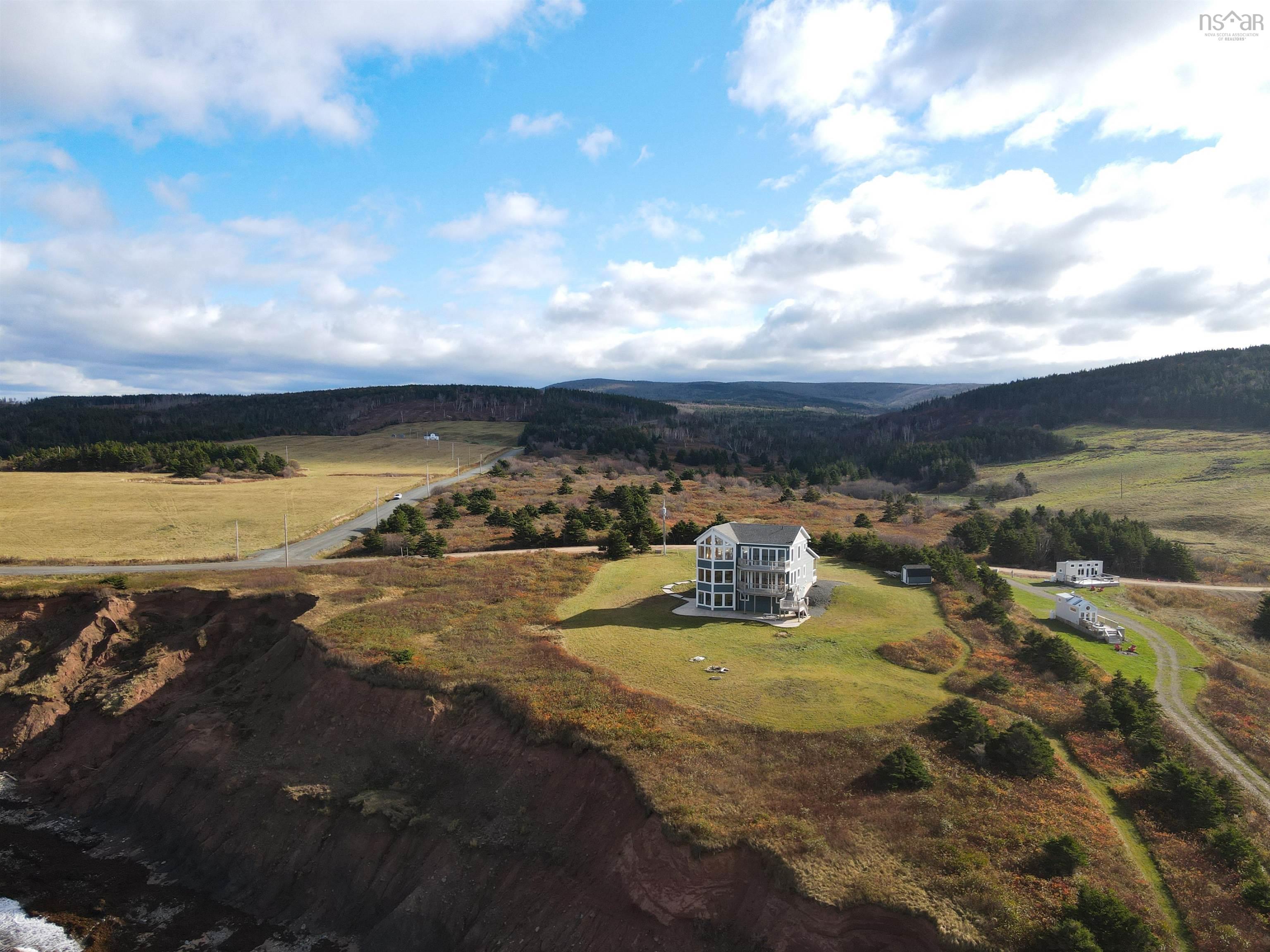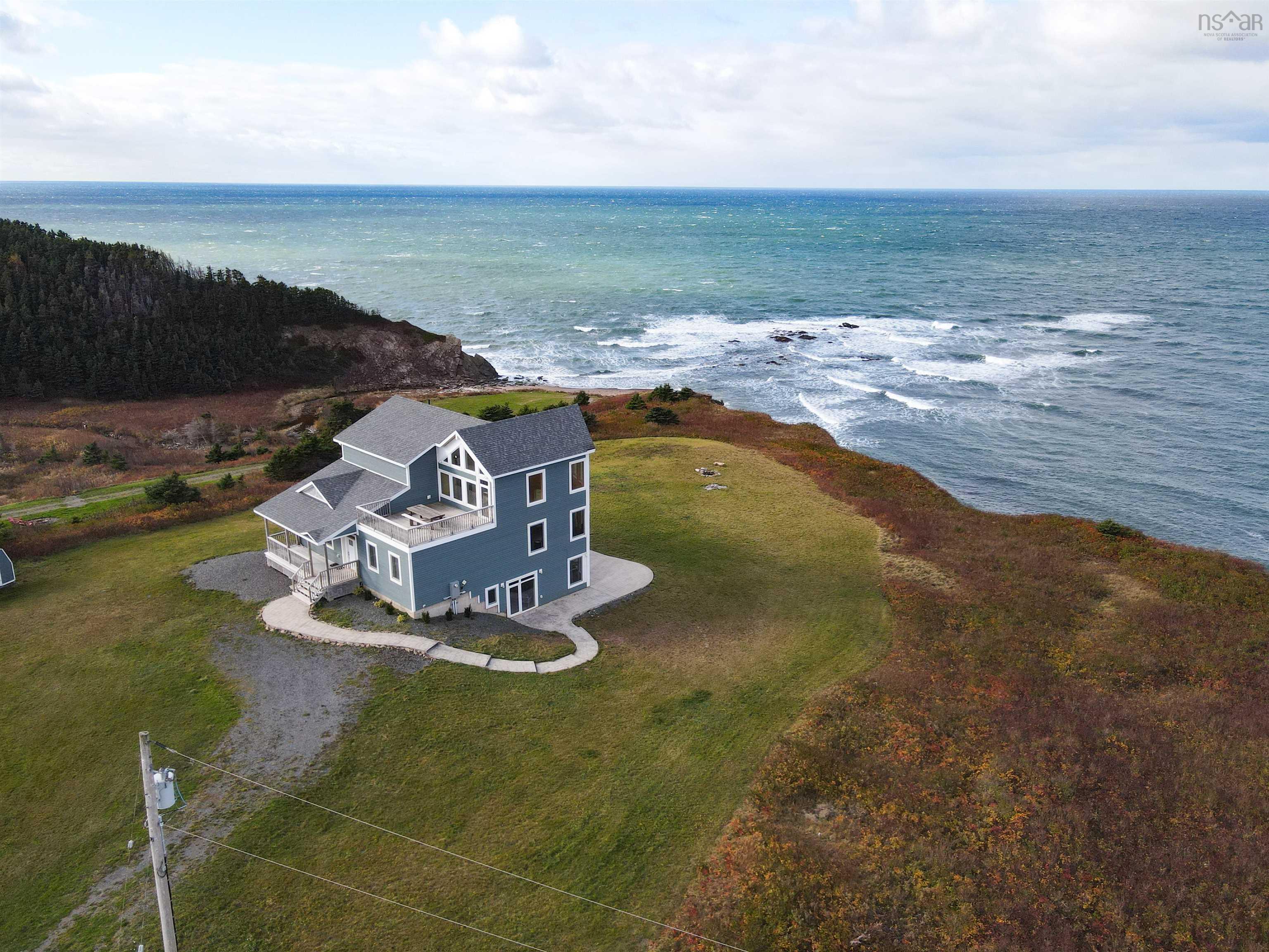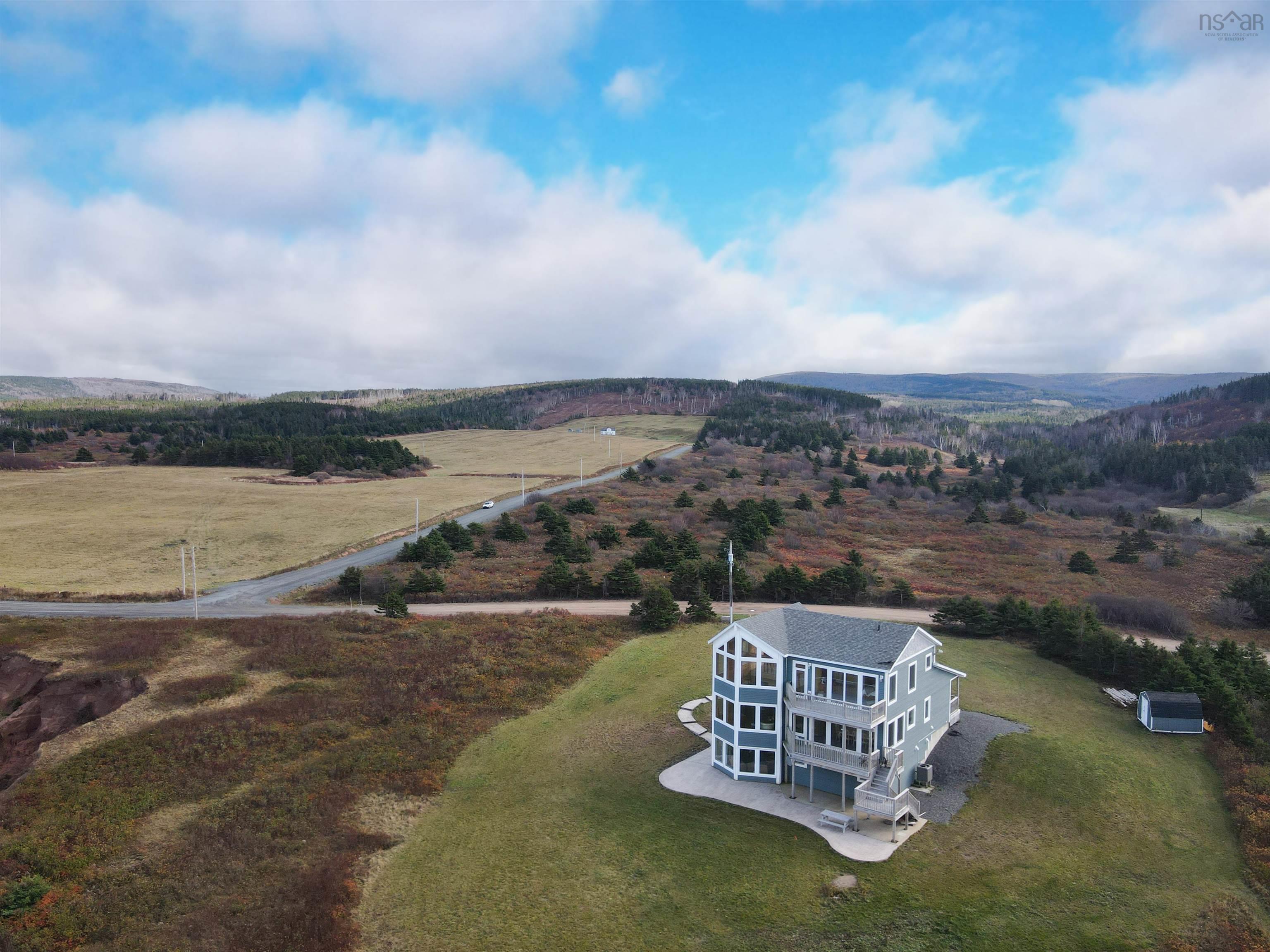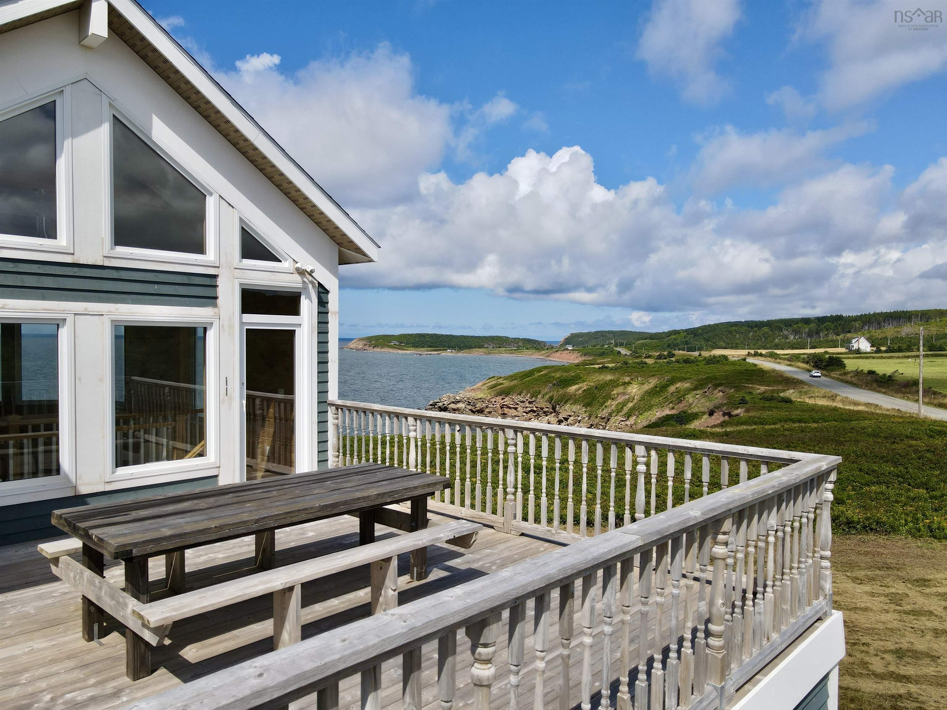 Just 10 minutes from Inverness and the world-renowned Cabot Links Golf Course, this stunning 2.85-acre property is perched atop the cliff with breathtaking views of the Northumberland Strait out to iconic Margaree Island. Built in 2019, this modern home has seen minimal use, having served as a seasonal short-term rental property. Its open-concept design and 20’+ ceilings flood the main living space with natural light, showcasing the uninterrupted ocean vistas. The main floor features 2 spacious bedrooms, 1.5 bathrooms, a convenient laundry room, and a combined living room, dining area, and kitchen are perfect for entertaining or relaxing by the sea. The upper level is dedicated to the luxurious primary suite, offering a private getaway with a walk-in closet, a spa-like ensuite featuring a walk-in shower and soaker tub, and access to two private decks. One overlooks the water, while the other offers sweeping views of the rolling hills. The walkout basement, fully above grade, adds versatility to the home. It includes a large sitting room, two additional oversized bedrooms, and a full bathroom, making it ideal for guests or extended family stays. Modern conveniences abound, with two 200-amp panels, central heating and cooling, a full water filtration system, and new appliances. Sold fully furnished, this property is truly turnkey – whether you're looking for a full-time residence, a summer getaway, or an income-generating rental. Opportunities like this, so close to world-class golfing and the vibrant Inverness community, are rare. There is lots of potential rental income to be made here! Don’t miss the chance to own your slice of coastal paradise.
