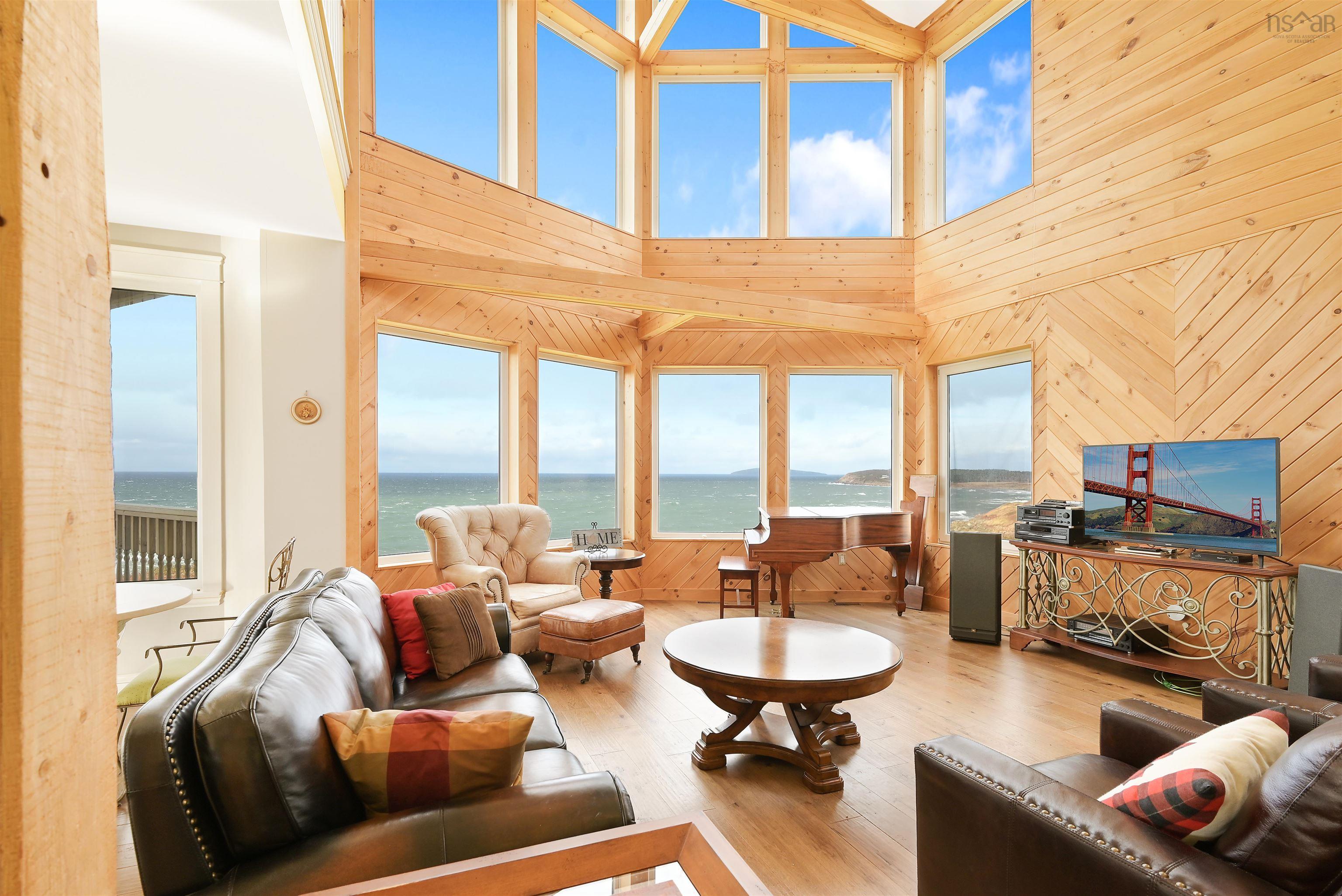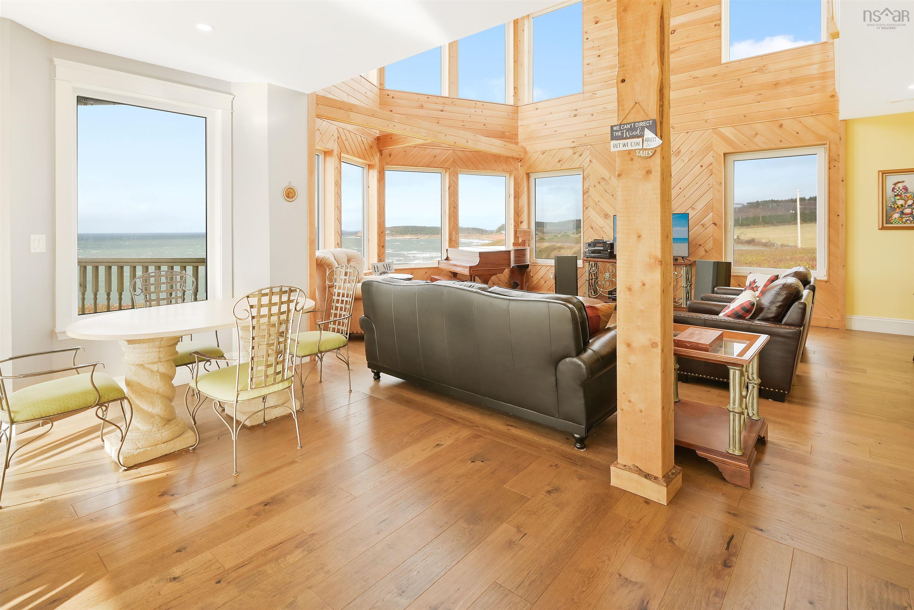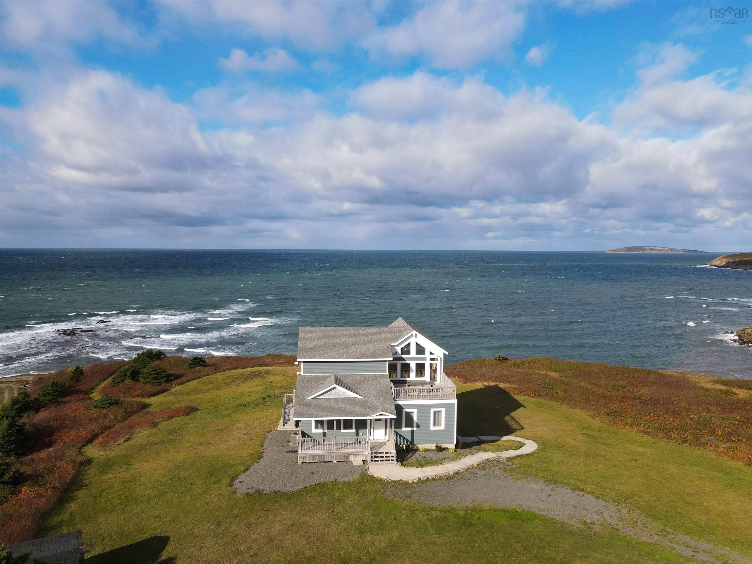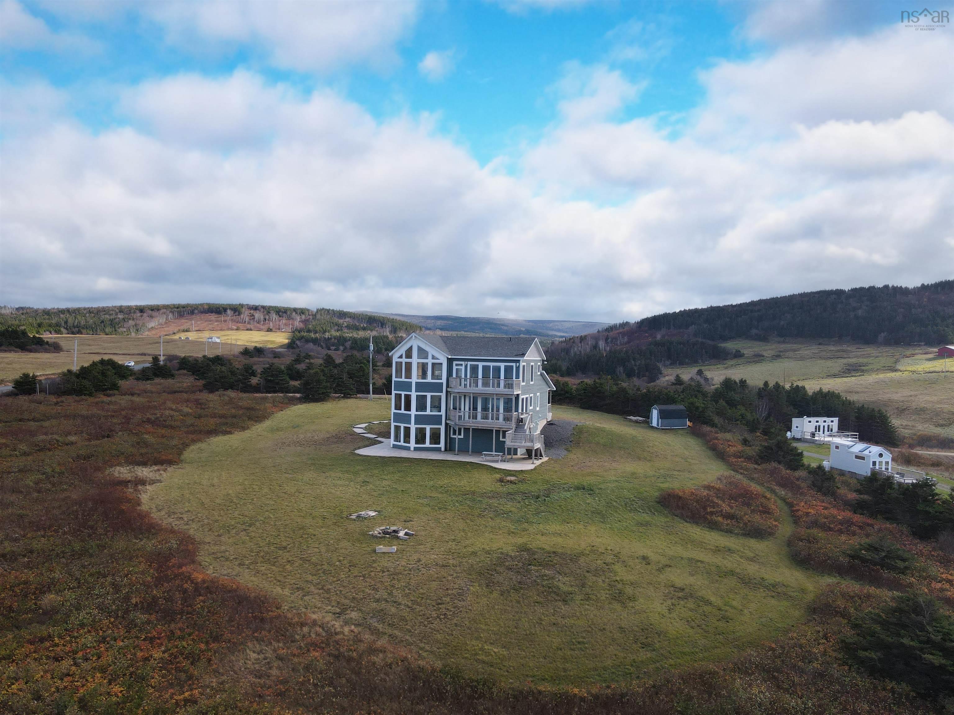 Just 10 minutes from Inverness and the world-renowned Cabot Links Golf Course, this stunning 2.85-acre property is perched atop the cliff with breathtaking views of the Northumberland Strait out to iconic Margaree Island. Built in 2019, this modern home has seen minimal use, having served as a seasonal short-term rental property. Its open-concept design and 20’+ ceilings flood the main living space with natural light, showcasing the uninterrupted ocean vistas. The main floor features 2 spacious bedrooms, 1.5 bathrooms, a convenient laundry room, and a combined living room, dining area, and kitchen are perfect for entertaining or relaxing by the sea. The upper level is dedicated to the luxurious primary suite, offering a private getaway with a walk-in closet, a spa-like ensuite featuring a walk-in shower and soaker tub, and access to two private decks. One overlooks the water, while the other offers sweeping views of the rolling hills. The walkout basement, fully above grade, adds versatility to the home. It includes a large sitting room, two additional oversized bedrooms, and a full bathroom, making it ideal for guests or extended family stays. Modern conveniences abound, with two 200-amp panels, central heating and cooling, a full water filtration system, and new appliances. Sold fully furnished, this property is truly turnkey – whether you're looking for a full-time residence, a summer getaway, or an income-generating rental. Opportunities like this, so close to world-class golfing and the vibrant Inverness community, are rare. There is lots of potential rental income to be made here! Don’t miss the chance to own your slice of coastal paradise.