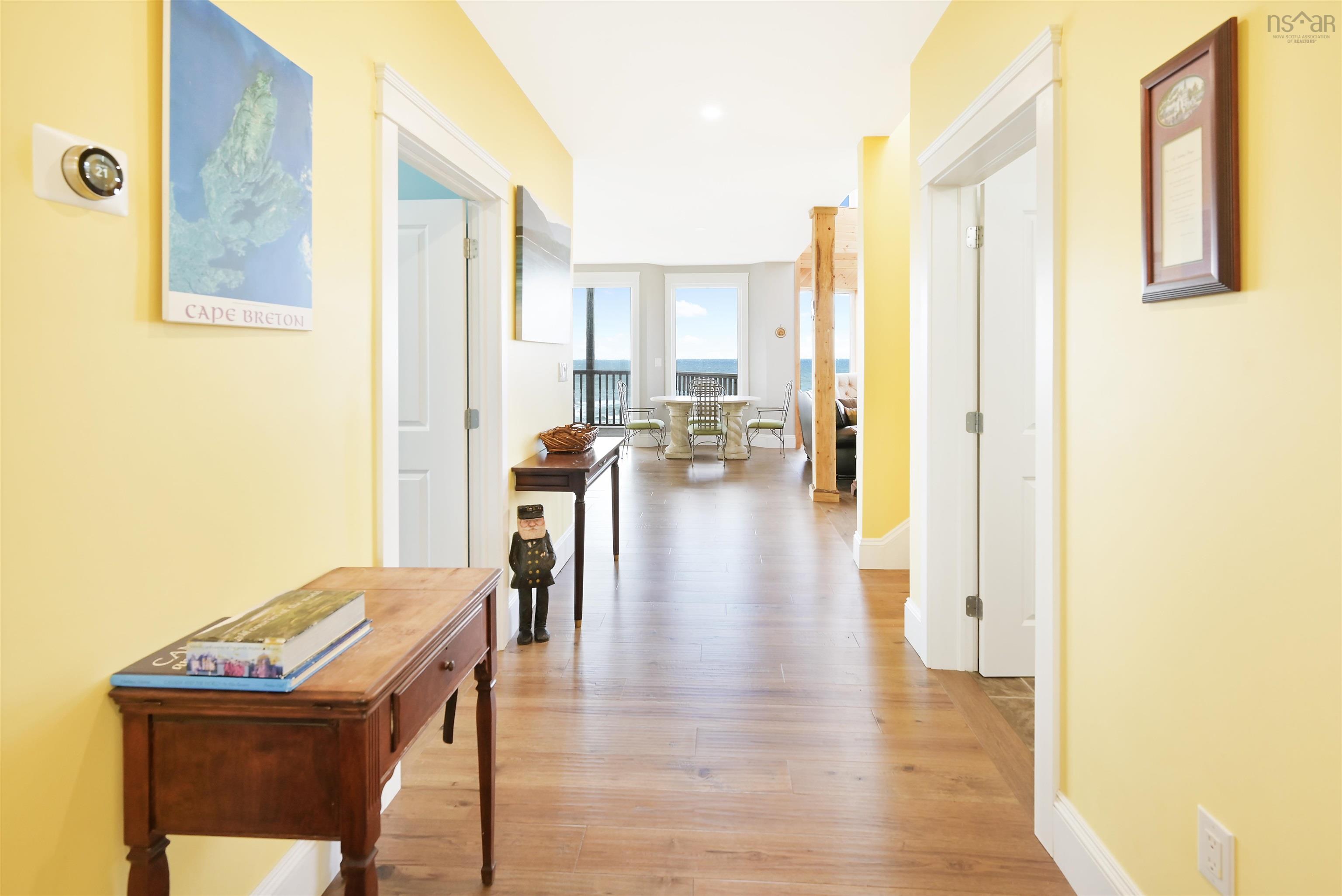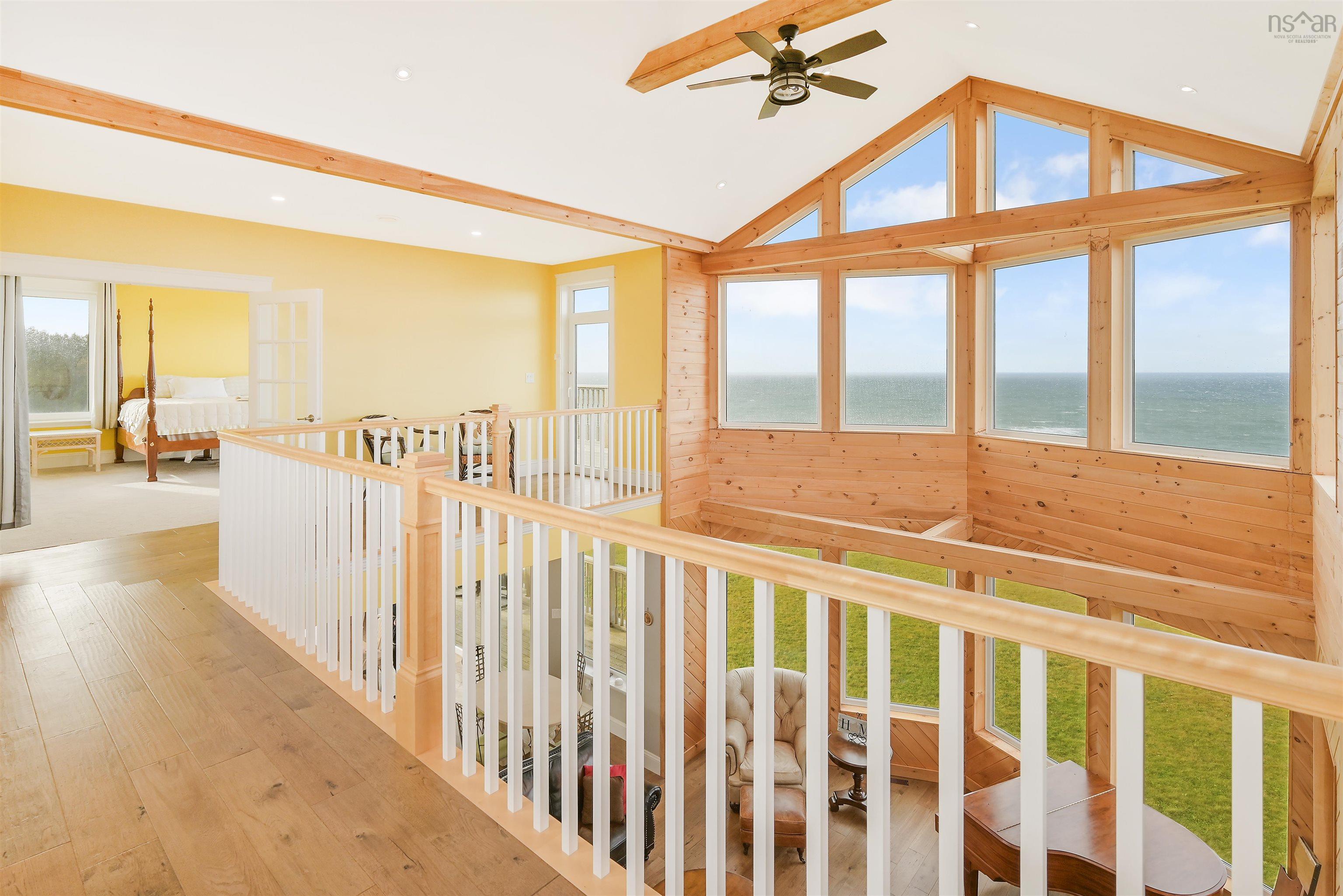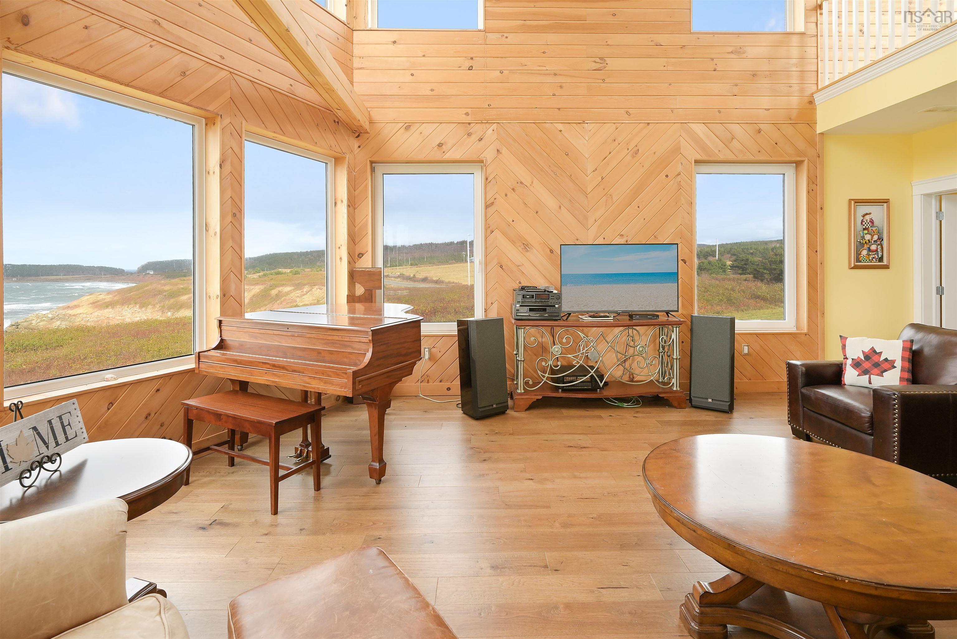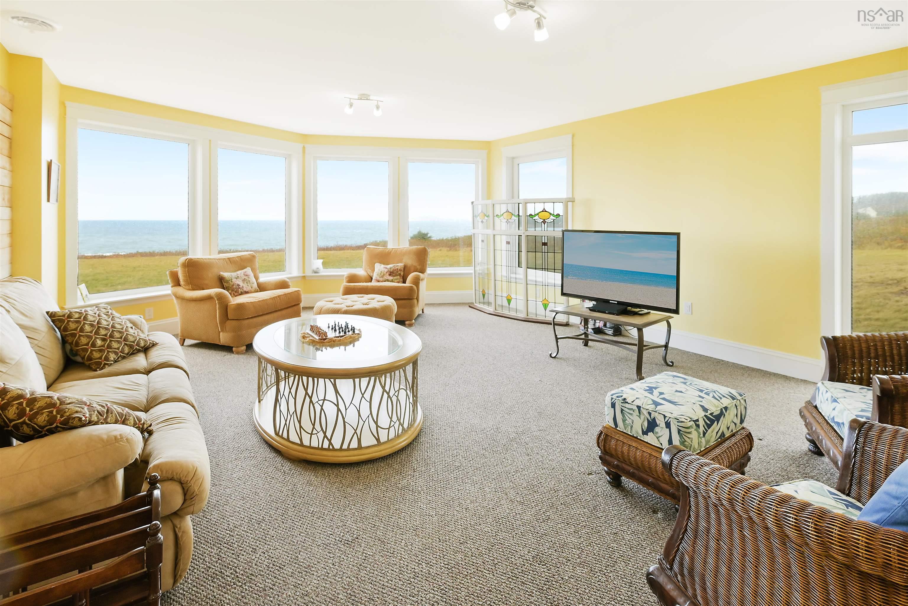 Just 10 minutes from Inverness and the world-renowned Cabot Links Golf Course, this stunning 2.85-acre property is perched atop the cliff with breathtaking views of the Northumberland Strait out to iconic Margaree Island. Built in 2019, this modern home has seen minimal use, having served as a seasonal short-term rental property. Its open-concept design and 20’+ ceilings flood the main living space with natural light, showcasing the uninterrupted ocean vistas. The main floor features 2 spacious bedrooms, 1.5 bathrooms, a convenient laundry room, and a combined living room, dining area, and kitchen are perfect for entertaining or relaxing by the sea. The upper level is dedicated to the luxurious primary suite, offering a private getaway with a walk-in closet, a spa-like ensuite featuring a walk-in shower and soaker tub, and access to two private decks. One overlooks the water, while the other offers sweeping views of the rolling hills. The walkout basement, fully above grade, adds versatility to the home. It includes a large sitting room, two additional oversized bedrooms, and a full bathroom, making it ideal for guests or extended family stays. Modern conveniences abound, with two 200-amp panels, central heating and cooling, a full water filtration system, and new appliances. Sold fully furnished, this property is truly turnkey – whether you're looking for a full-time residence, a summer getaway, or an income-generating rental. Opportunities like this, so close to world-class golfing and the vibrant Inverness community, are rare. There is lots of potential rental income to be made here! Don’t miss the chance to own your slice of coastal paradise.