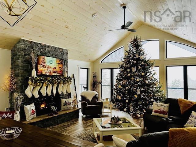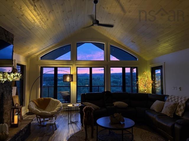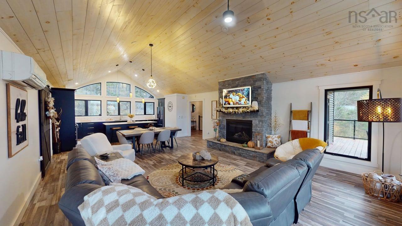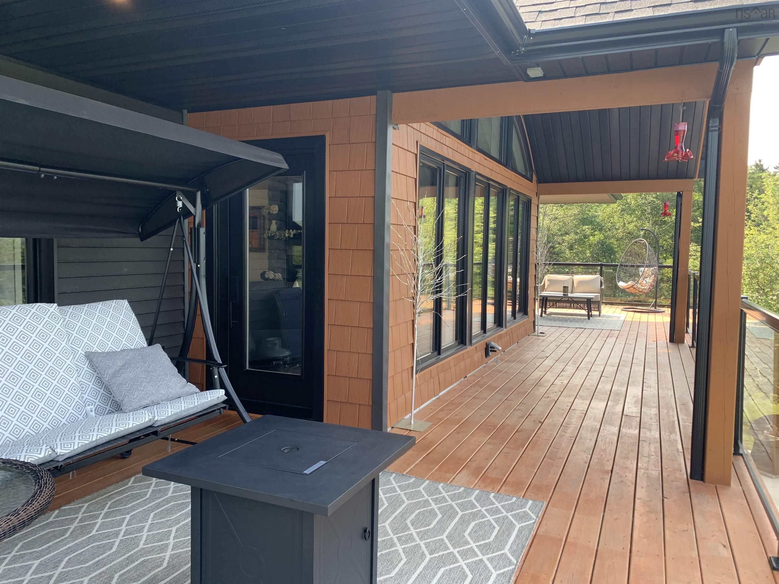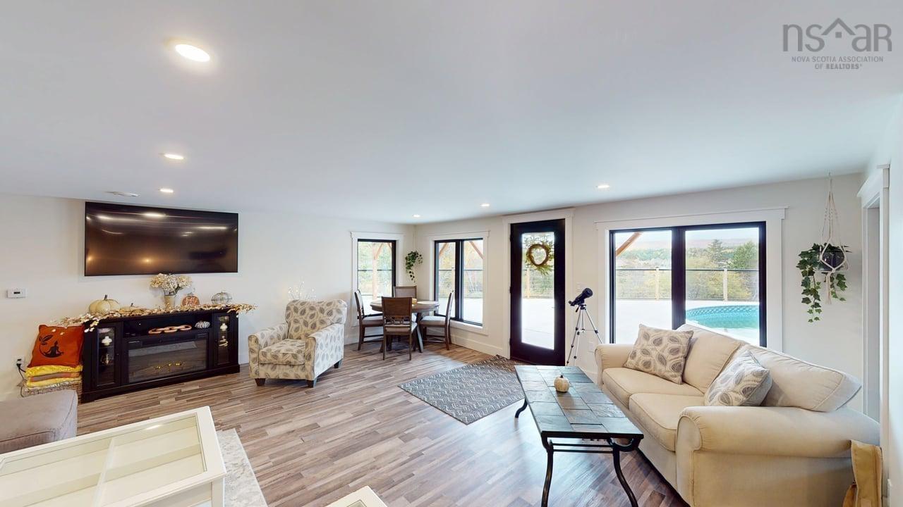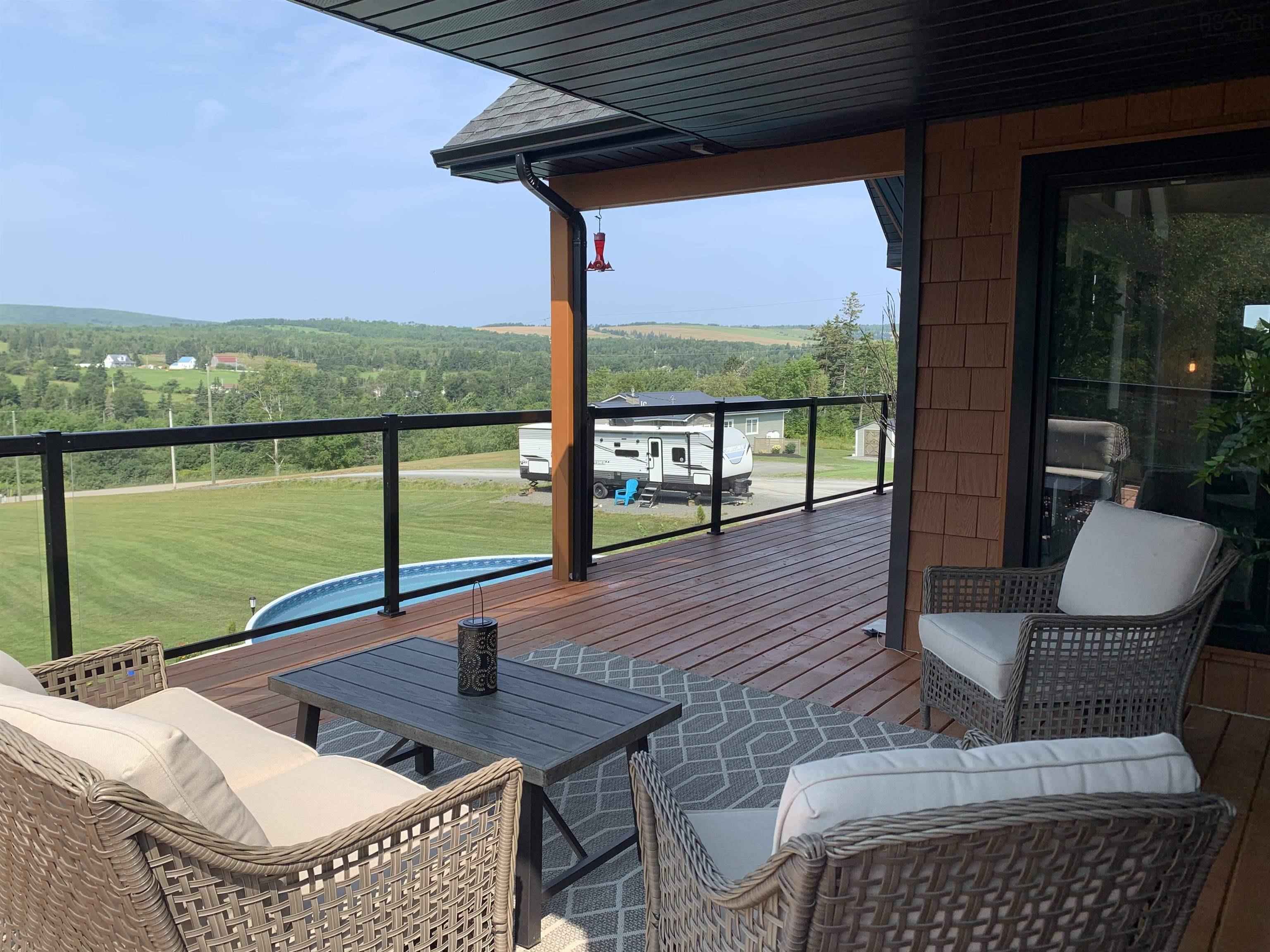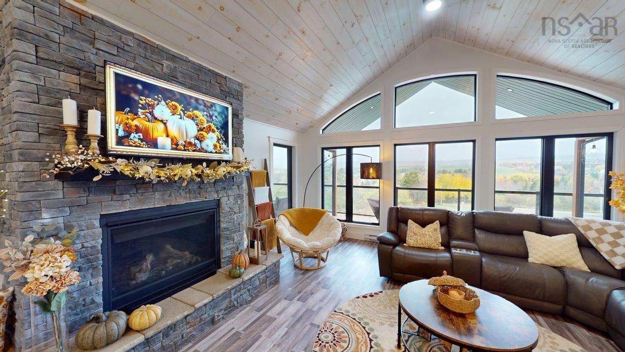 Visit REALTOR® website for additional information. Built in 2022, this stunning executive chalet-style home offers over 3,400 sq. ft. of luxurious living space and is sure to impress! Featuring expansive windows, 13-ft cathedral ceilings, a stone fireplace, custom lighting, pine board ceilings, and high-end finishes throughout. Professionally appraised and priced accordingly. Located in scenic Lower North Grant, this hilltop property offers breathtaking views of sunsets, rolling hills, and valleys - just 5 minutes from Antigonish, blending country charm with convenience. Inside, the quality craftsmanship is evident in every detail. The open-concept kitchen, dining, and living area is perfect for entertaining, complete with a functional island, beverage fridge, and plenty of cabinetry. The bright living room opens to a full-length covered balcony overlooking the pool and picturesque landscape, ideal for dining or lounging outdoors. The primary suite features a fireplace, accent wall, balcony access, walk-in closet, and spa-inspired ensuite with a walk-in shower and soaker tub. Two additional bedrooms, a main bath, and a laundry area with sliding doors complete the main level. The lower level offers a spacious rec room with patio access to the pool area, a fourth bedroom, a half bath, an office/study area, large storage, and a utility room. Comfort is ensured year-round with in-floor heating (lower level), a ductless heat pump, a propane fireplace, and electric baseboards. The home is also generator-wired, and all bedrooms are acoustically insulated for peace and privacy. A 19' x 8' pop-up locker provides extra storage for lawn equipment, and select pool/outdoor furniture is negotiable. Experience the perfect balance of comfort, style, and functionality — where every day feels like a retreat.