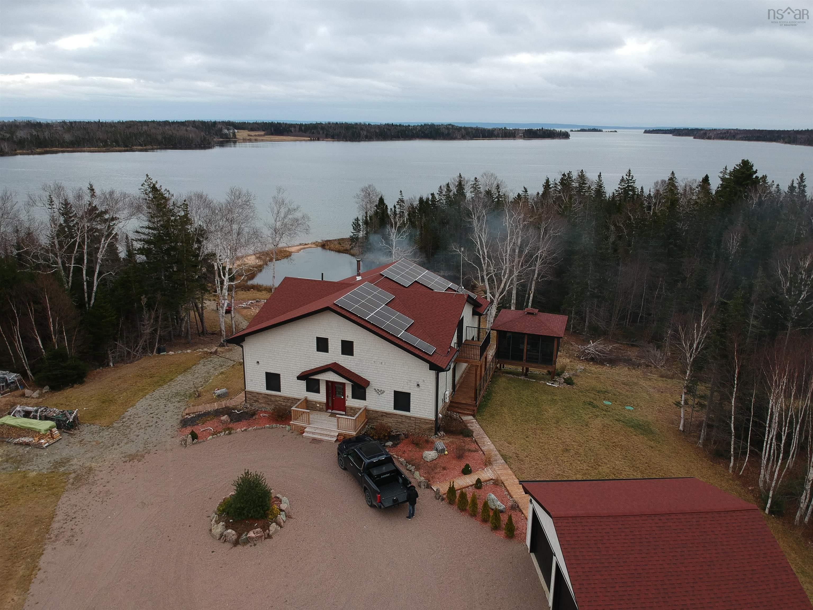 Cape Breton Island is one of Canada’s premier vacation destination and this property is an exceptional showcase of its beauty and lifestyle. Nestled on the shores of the Bras d’Or Lake, (Canada’s largest Inland Sea), this property encompasses 2 building lots with over 6.37 Acres with 800ft of sandy beach. The home is over 5000sf with 4 large bedroom, 3 full baths and 2 half baths in an open concept floor plan with quality and luxury at every turn. It’s a natural setting with lots of additional outdoor living space plus a full walk out basement to a landscaped waterfront setting. The property offers the latest in technology efficiencies including Solar Panels, security and a large detached garage.. Additionally, this property has an AirBNB history of significant returns to supplement your ownership costs. Management and maintenance support is all in place. This is an oasis of natural, tranquil waterfront living at an EXCEPTIONAL Value.
