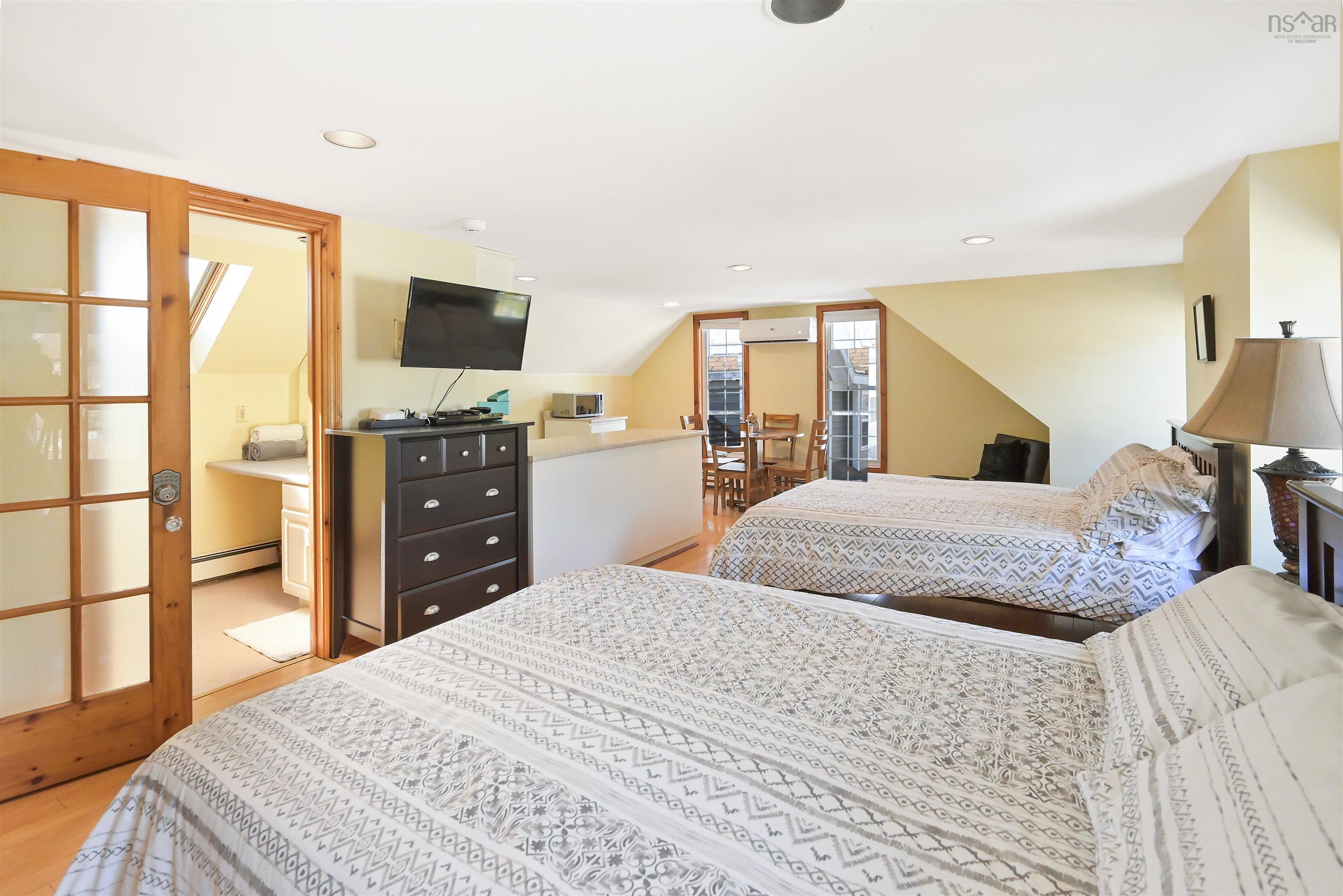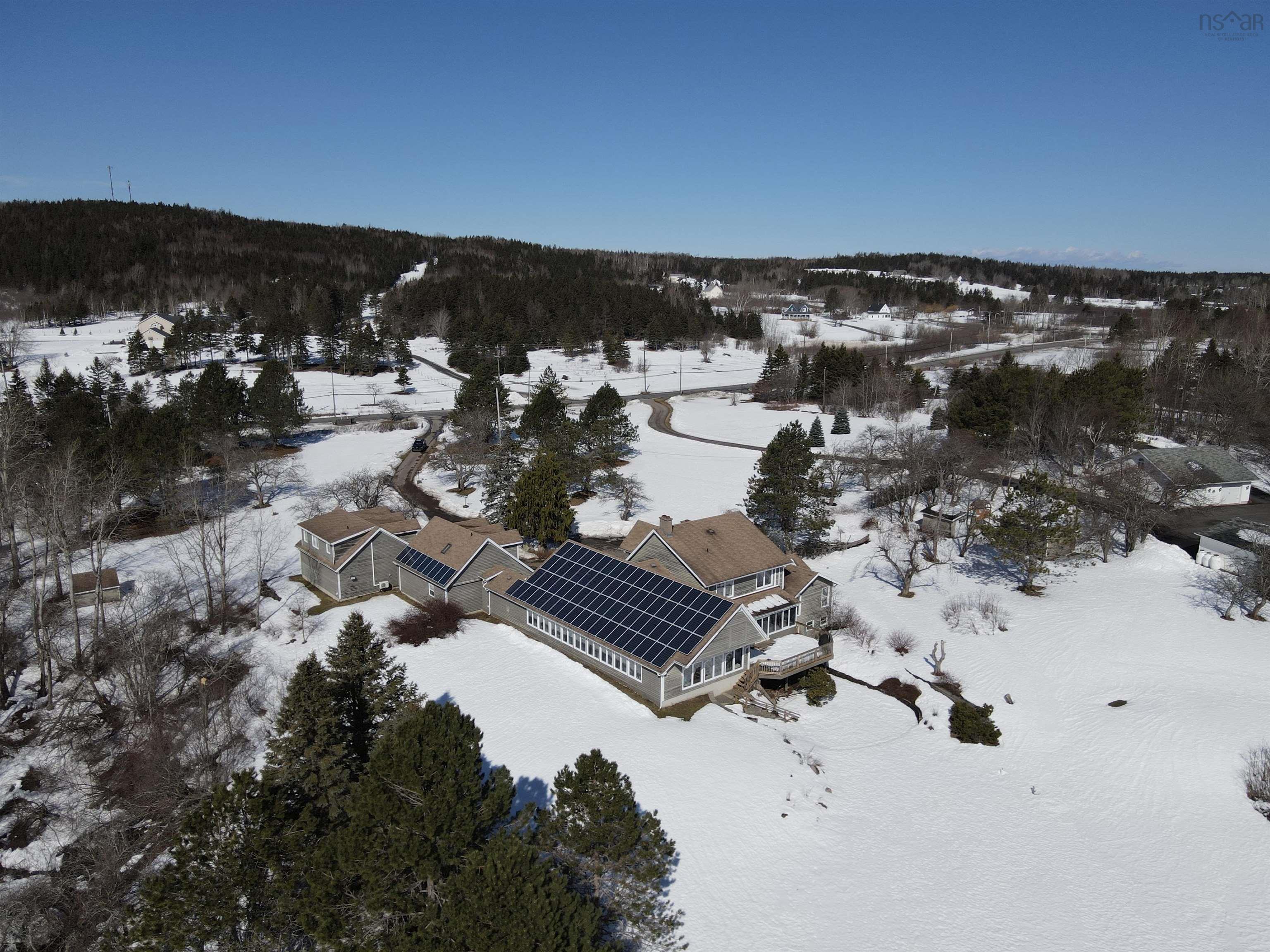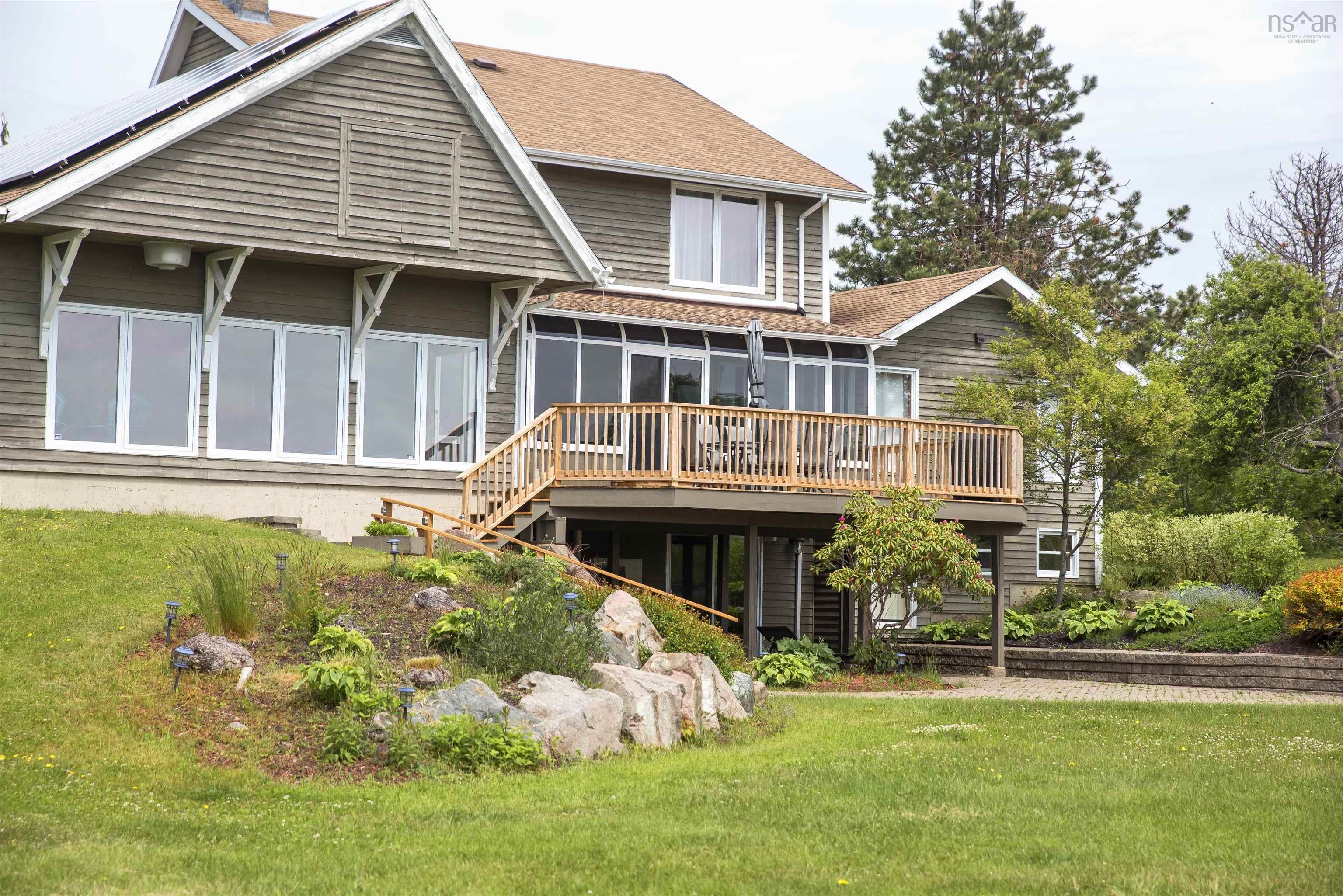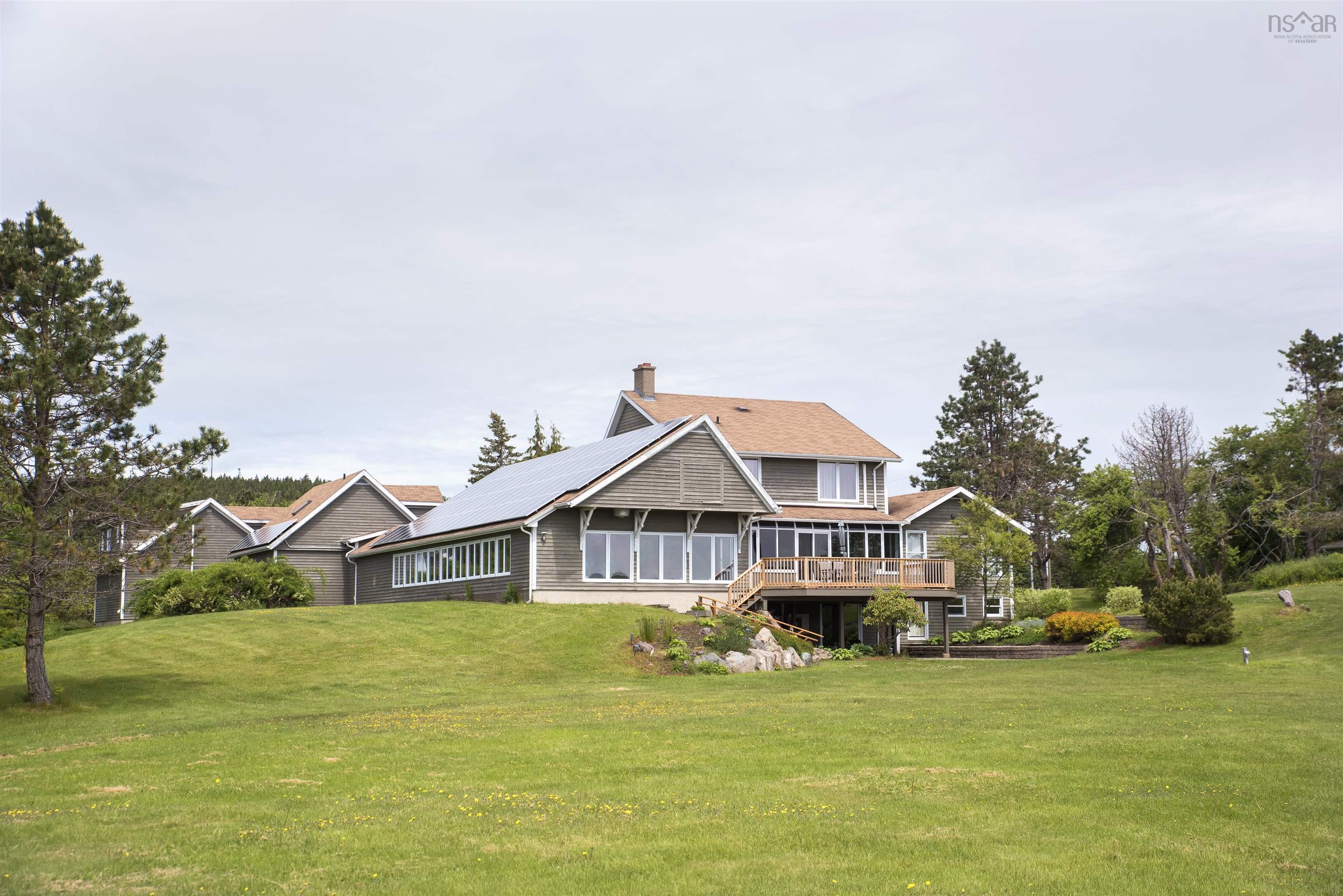 Own a piece of Canadian music history with this expansive 5.7-acre waterfront estate, famously known as the former residence of legendary songstress Rita MacNeil. Built specifically for Rita between 1991 and 1992, the home has been meticulously preserved and features many of her original high-end touches. Located on the shores of Sydney River, this multi-unit property is far more than a home; it is a high-performance, turnkey hospitality property with a proven track record as a very successful short-term rental. The estate offers approximately 5,500 square feet of finished living space across three distinct units, providing unparalleled flexibility for an owner-occupier or investor. The main house is a 4-bedroom, 3.5-bathroom masterpiece featuring a massive chef’s kitchen and a sun-drenched solarium, while the lower level, once Rita’s personal recording studio, now serves as a premier entertainment hub with a games room and bar. Connected by a breezeway is the private "Rita’s Suite," which contains two bedrooms, two bathrooms, and a full kitchen, alongside a chic, open-concept upper-level bachelor unit equipped with its own full kitchen and bath. Lifestyle and amenities abound as you experience ultimate relaxation in the 1,500 square foot indoor saltwater pool complex, featuring soaring cedar ceilings and lake views. The grounds are a masterpiece of landscaping, ranging from "Rita’s Garden" by the babbling brook—where she composed much of her music—to the private dock on Sydney River for boating and swimming. The property is engineered for modern sustainability with a full solar array and heat pumps to minimize operational costs. With an established management team and cleaning staff willing to stay on board, this destination stands as the most unique and high-yielding waterfront offering in Cape Breton today.