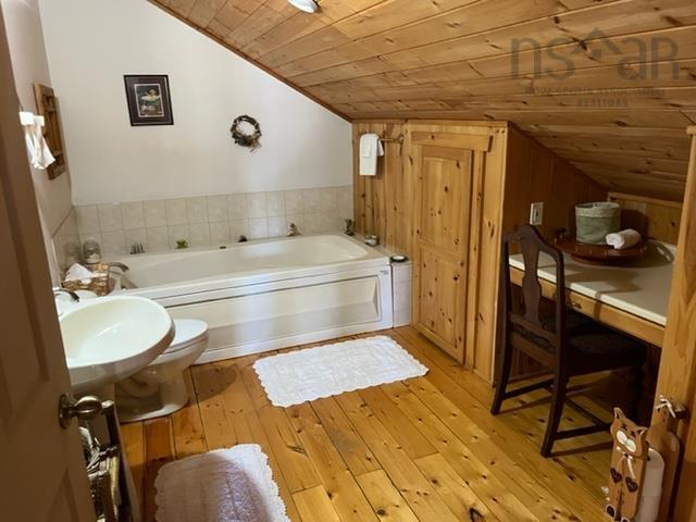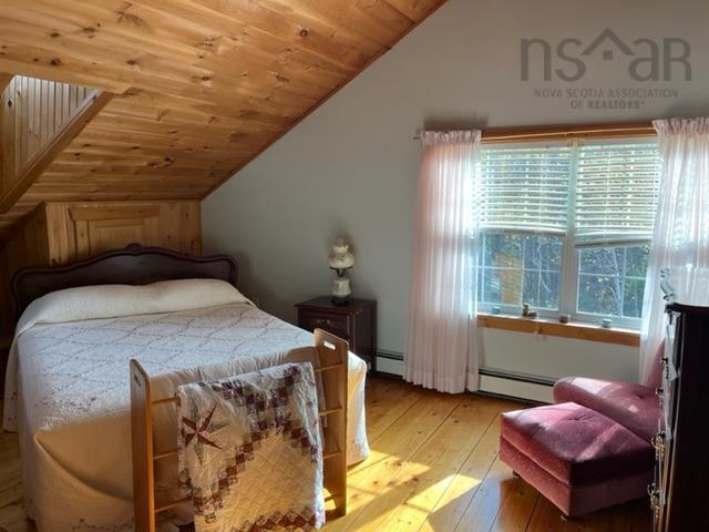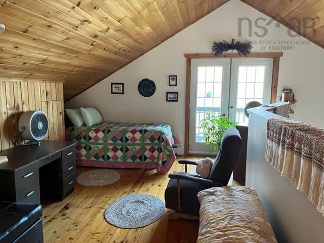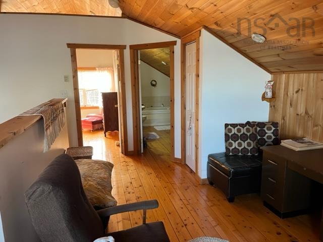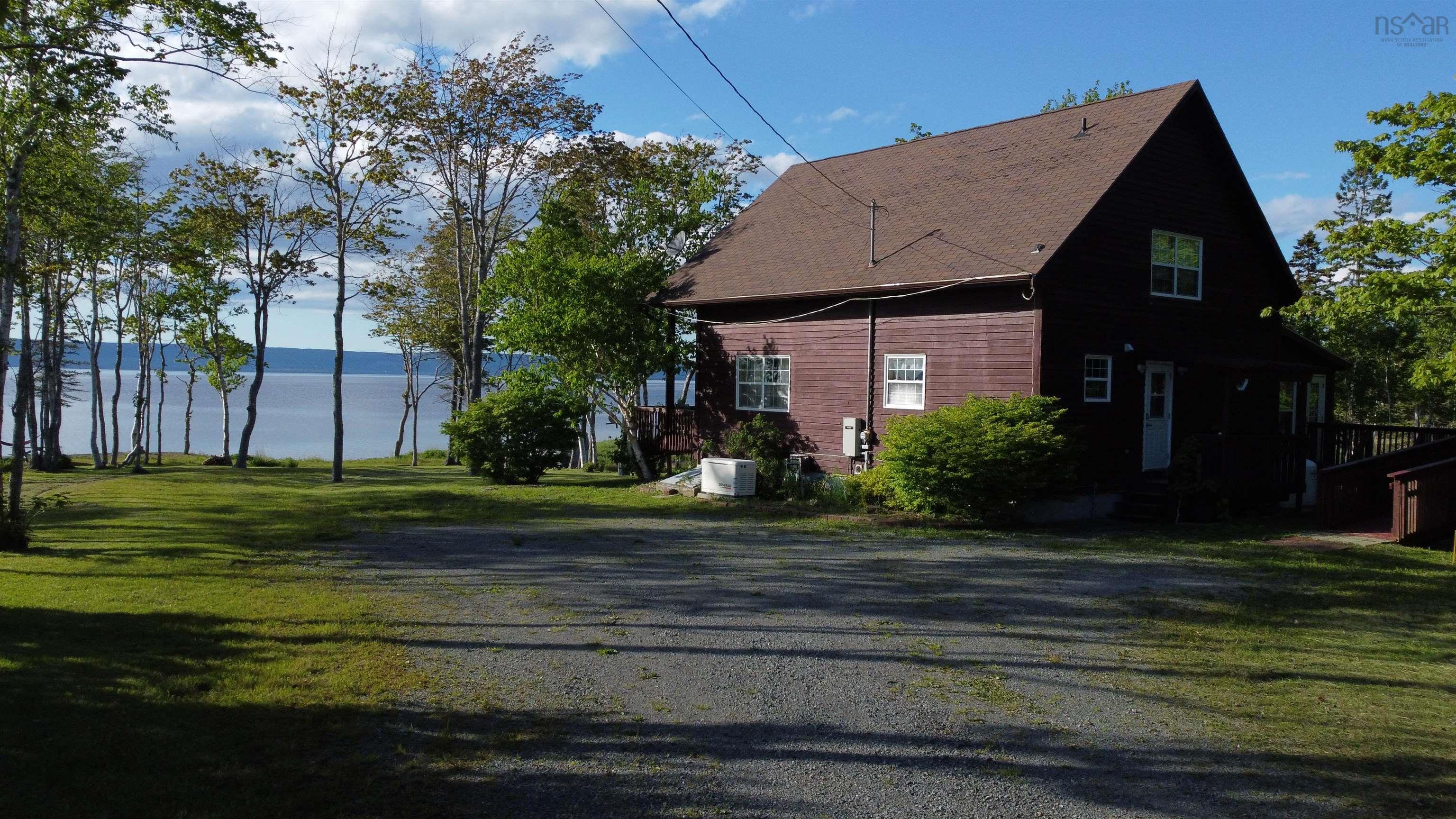 Looking for an incredible Bras d'Or Lake beach? As you wind along the driveway to the shore, out of view by a nice mixed forest, you drive through the gate to an open area. An incredible beachfront find on the Bras d'Or Lake. 4 acres +- to enjoy. Tastefully landscaped and the home nestled in the trees. Main floor open concept living room/kitchen/dining, large enough for a Ceilidh. Cathedral ceiling in the living room section. Loads of cabinets and room for the family. A gorgeous den to sit and read and a recent attached sun room, great for all seasons and a 3 piece bath. The upper floor contains the master bedroom, a huge 3 piece bath with lots of built-ins, along with a large sitting area which opens to a second floor deck with incredible views. The basement of the home has two guest bedrooms along with additional 3 piece bath and laundry with the best of finishes. The home has a large front deck that can seat the whole family. The grounds has a 2 storey garage for his projects and the upper floor contains a studio apartment that just needs some finishing touches. Large separate shed for all your garden supplies and tools.